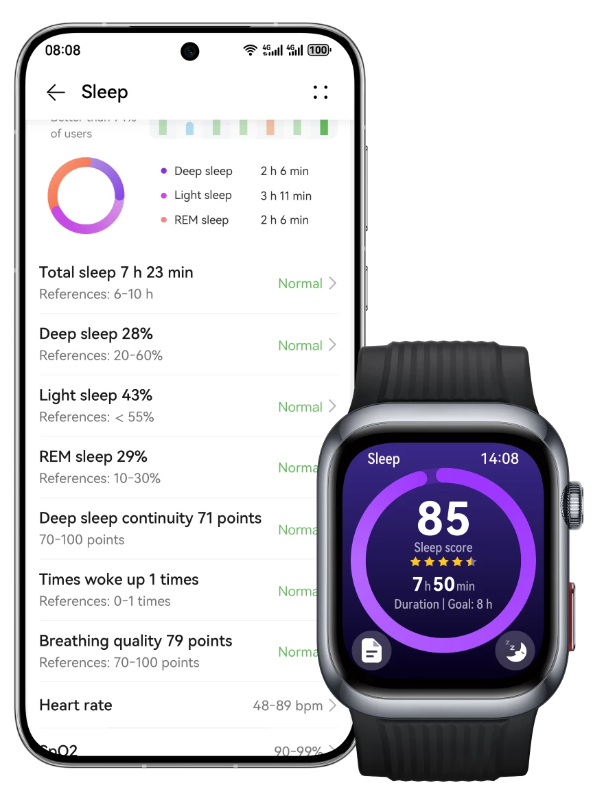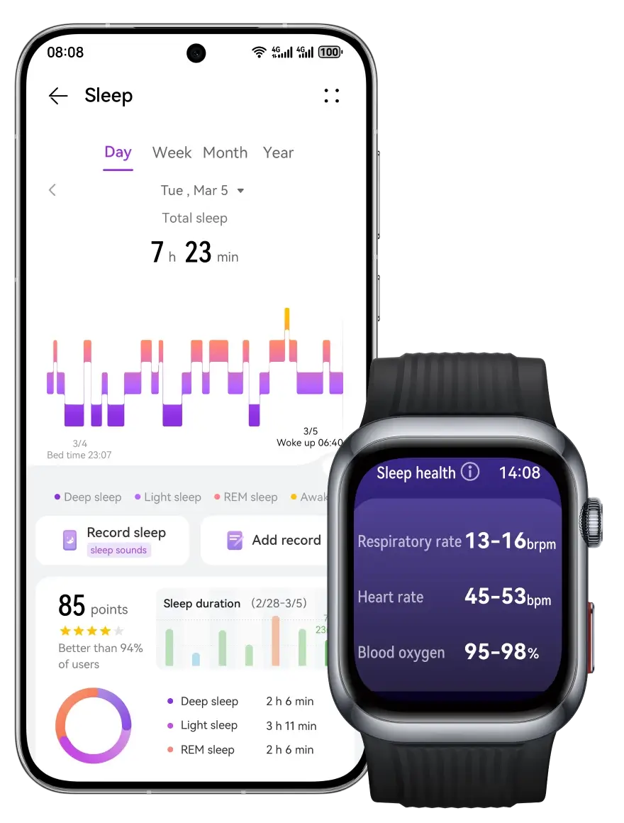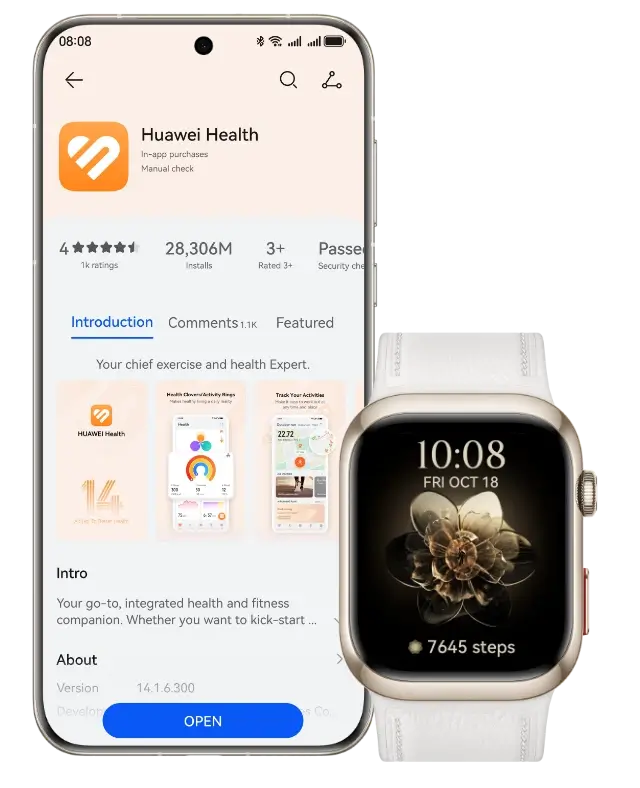 5.Available only when paired with a phone running Android 8.0/iOS 13.0 or later and installed with the HUAWEI Health app. Actual feature availability may vary depending on the phone model and operating system.