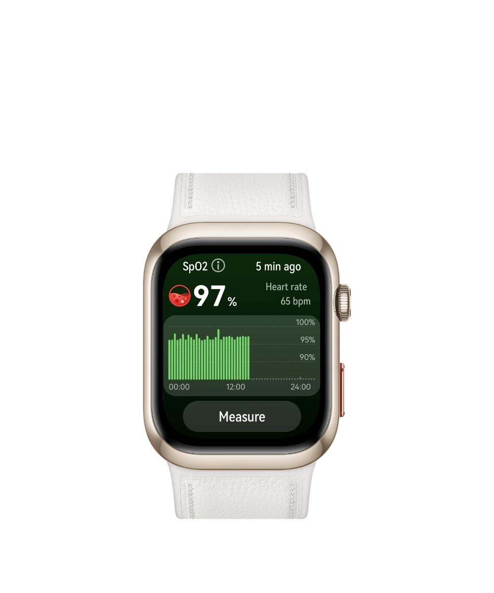 10.Oxygen saturation (SpO₂) is the proportion of oxygen-saturated haemoglobin relative to total haemoglobin in the blood, that is, the concentration of blood oxygen. The watch automatically measures and records SpO₂ while you're at rest. This feature is not intended for medical use. All data is for reference only and should not be used as basis for diagnosis or treatment.