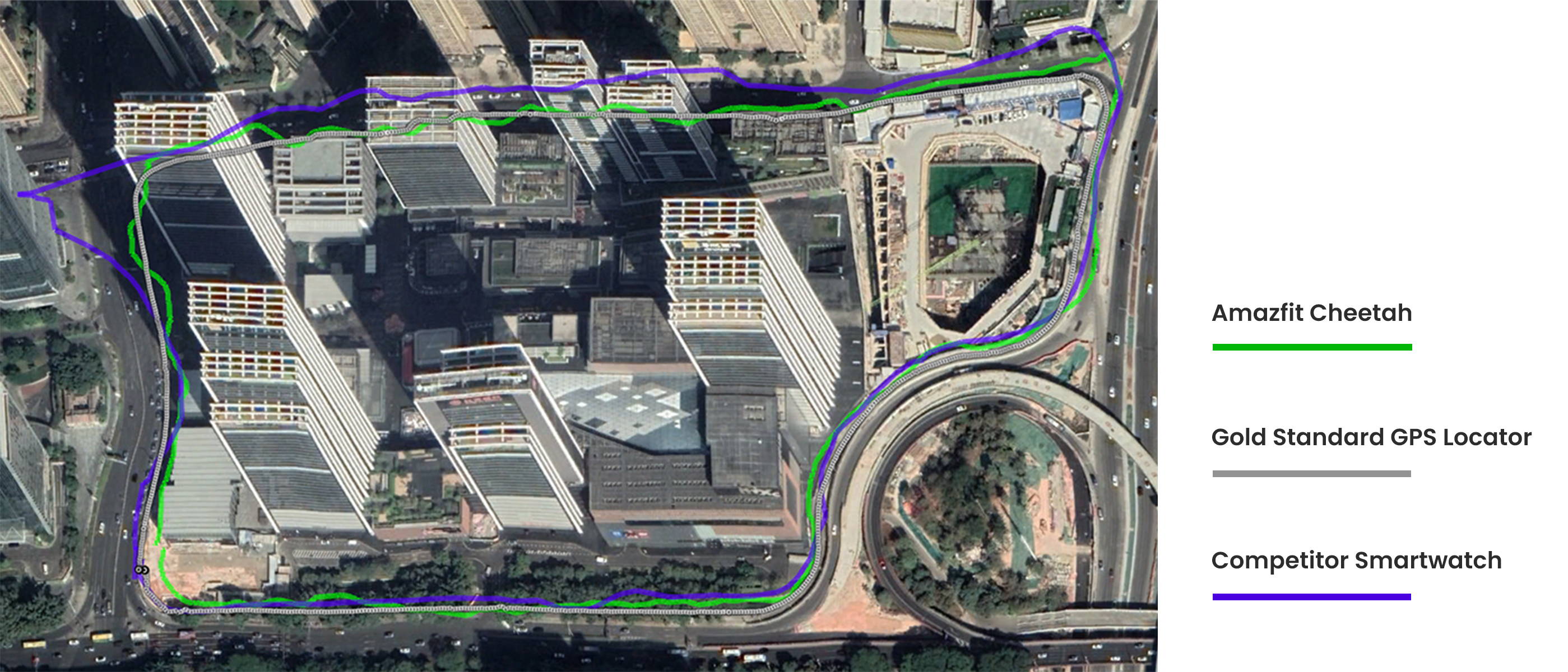 The Amazfit Cheetah can pick up L1 and L5 satellite signals for pinpoint dual-band GPS tracking, and supports six satellite positioning systems for reliable coverage[2]. We've got you covered, wherever you like to run.