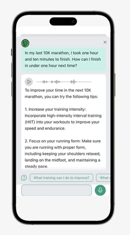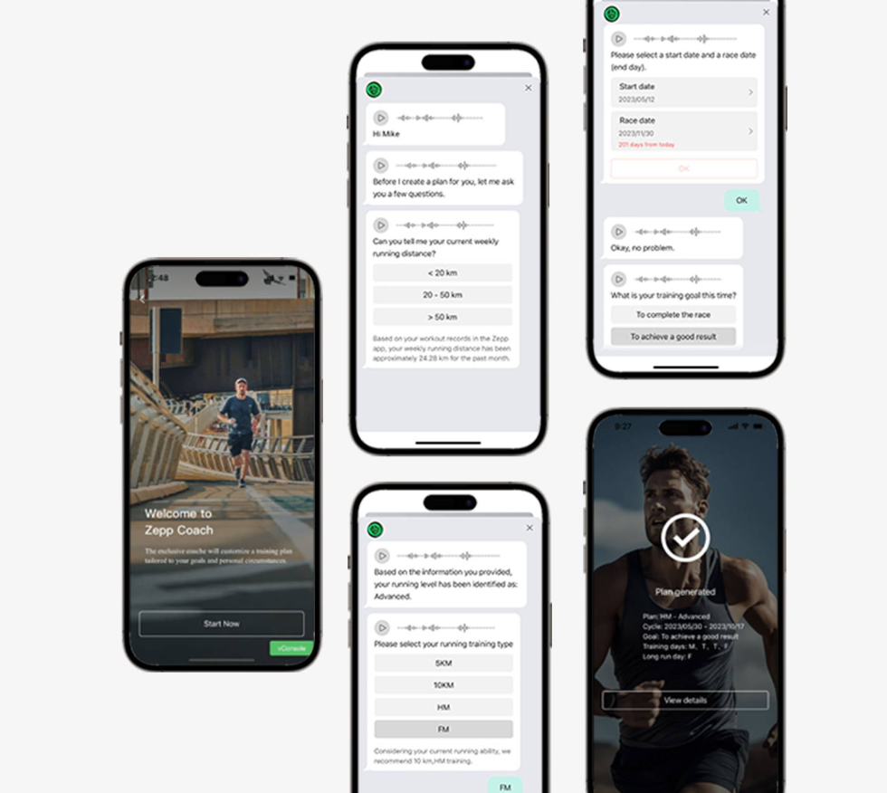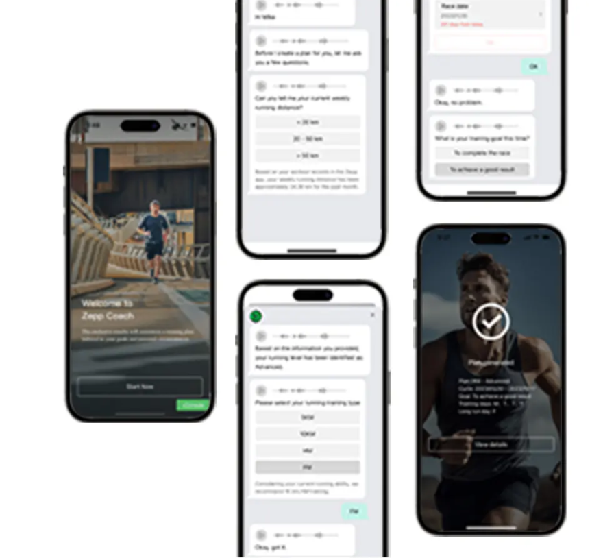 The Zepp Coach AI Chat feature in the Zepp App, powered by generative AI and applied large language model (LLM), recognizes your natural language descriptions in order to help you smash your fitness goals, one question at a time.