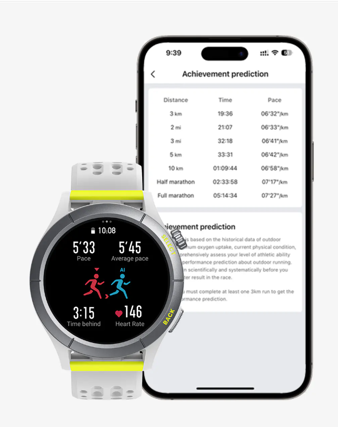 Friendly to both Android and iOS users, the Zepp App on your phone lets you access Race Achievement Predictions, create Training Templates, and review detailed data for sports modes like Track Run, Strength Training and more. It also provides health and exercise data analysis, features watch face and app stores, provides system updates for your watch, and facilitates smart device management.