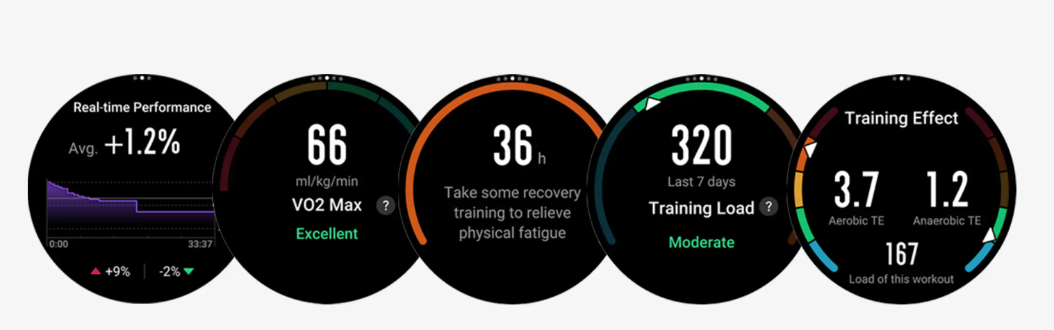 8. Real-time performance scores and VO2 Max are only supported within Outdoor Running and Track Run modes.