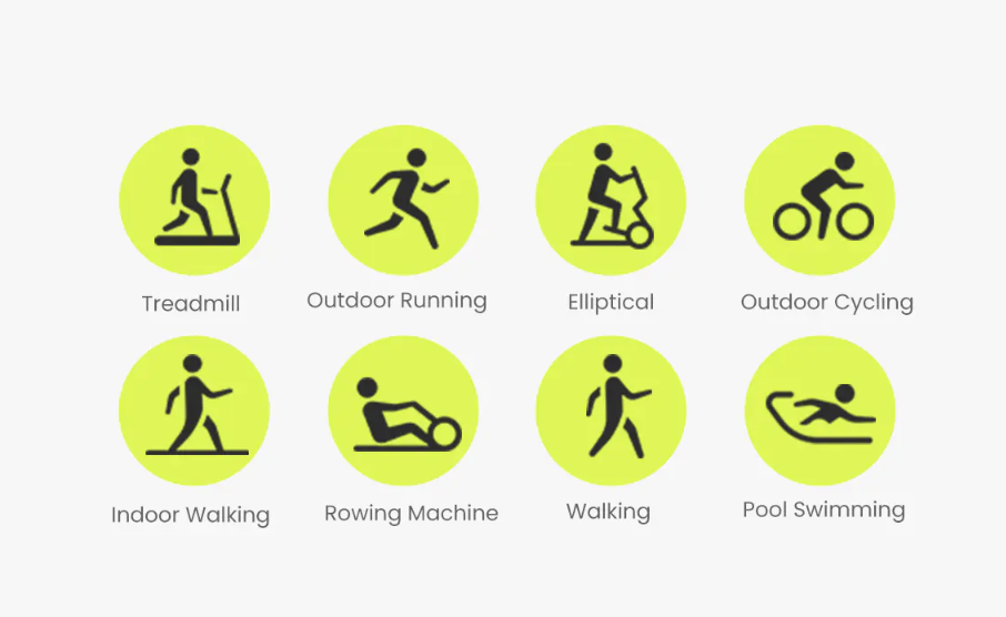 12. Corresponding sports modes include: Outdoor Running, Treadmill, Walking, Indoor Walking, Outdoor Cycling, Pool Swimming, Rowing Machine, Elliptical. The accuracy and sensitivity of the workout recognition feature varies from person to person, and are related to the posture and proficiency of the user during their workout. Short workout duration or frequent changes in posture may not trigger the automatic recognition feature. When you are driving a car or taking a bus, or taking part in other such activities, accidental recognition may be triggered if these activities are particularly similar to the selected workout mode. When you are conducting outdoor activities, if the GPS signal is poor or the AGPS data information has not been synchronized with the mobile phone for an extended period, these outdoor activities may be assessed as indoor activities.