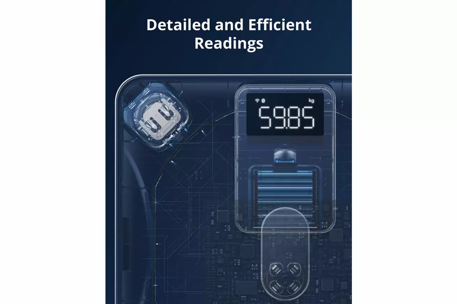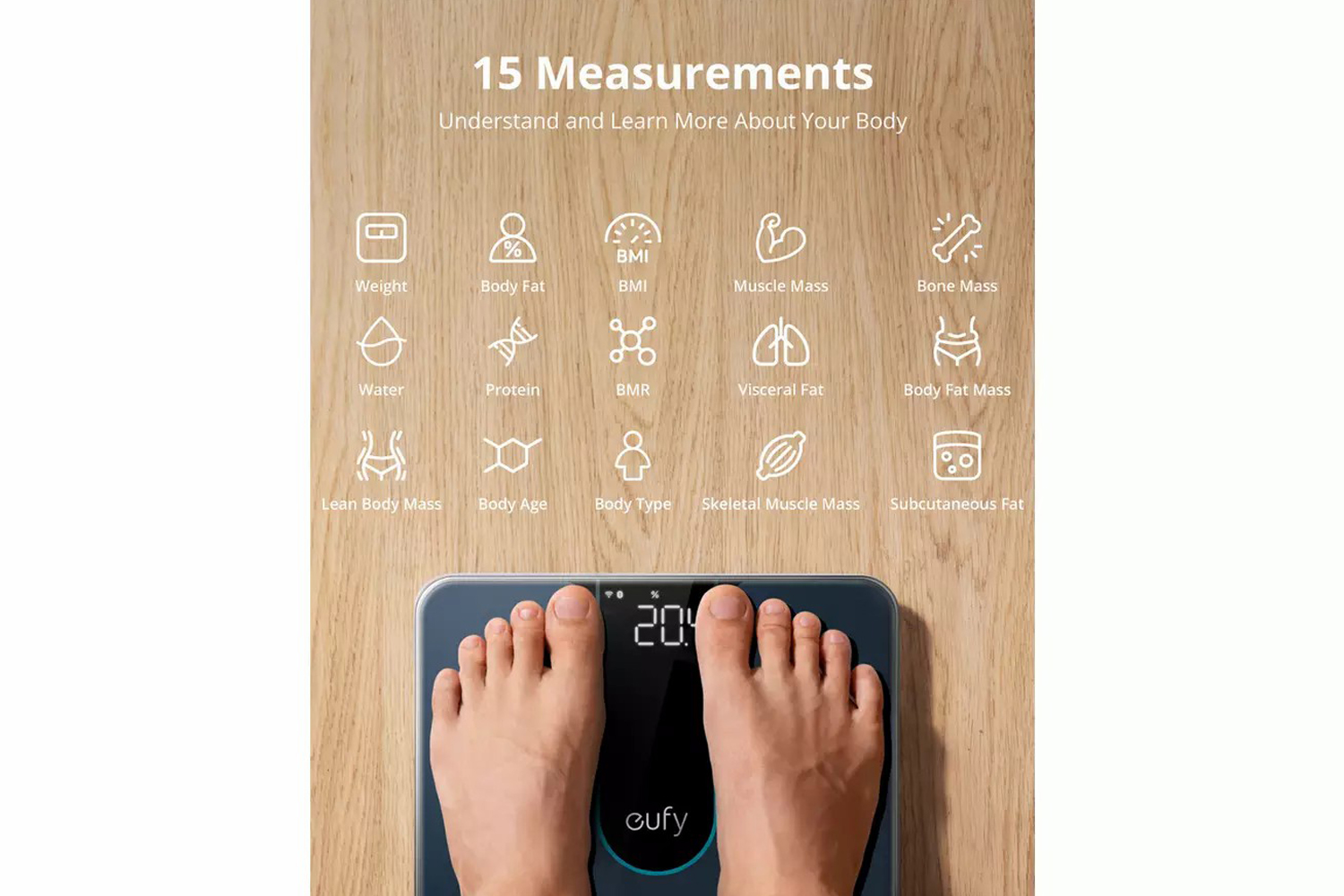 Learn more about your body with 15 body measurements, including body weight, body fat, BMI, muscle mass, bone mass, and more. The interactive 3D Avatar mirrors your measurements and offers a detailed visual of your body changes. Sync eufy Smart Scale P2 with Apple Health, Google Fit, or Fitbit using a Wi-Fi or Bluetooth connection. Create user profiles on the app for everyone in the family - it even features Baby and Pet modes. It's also got an IPX5 waterproof rating, anti-slip finish, and sleek rounded corners prioritise your safety.