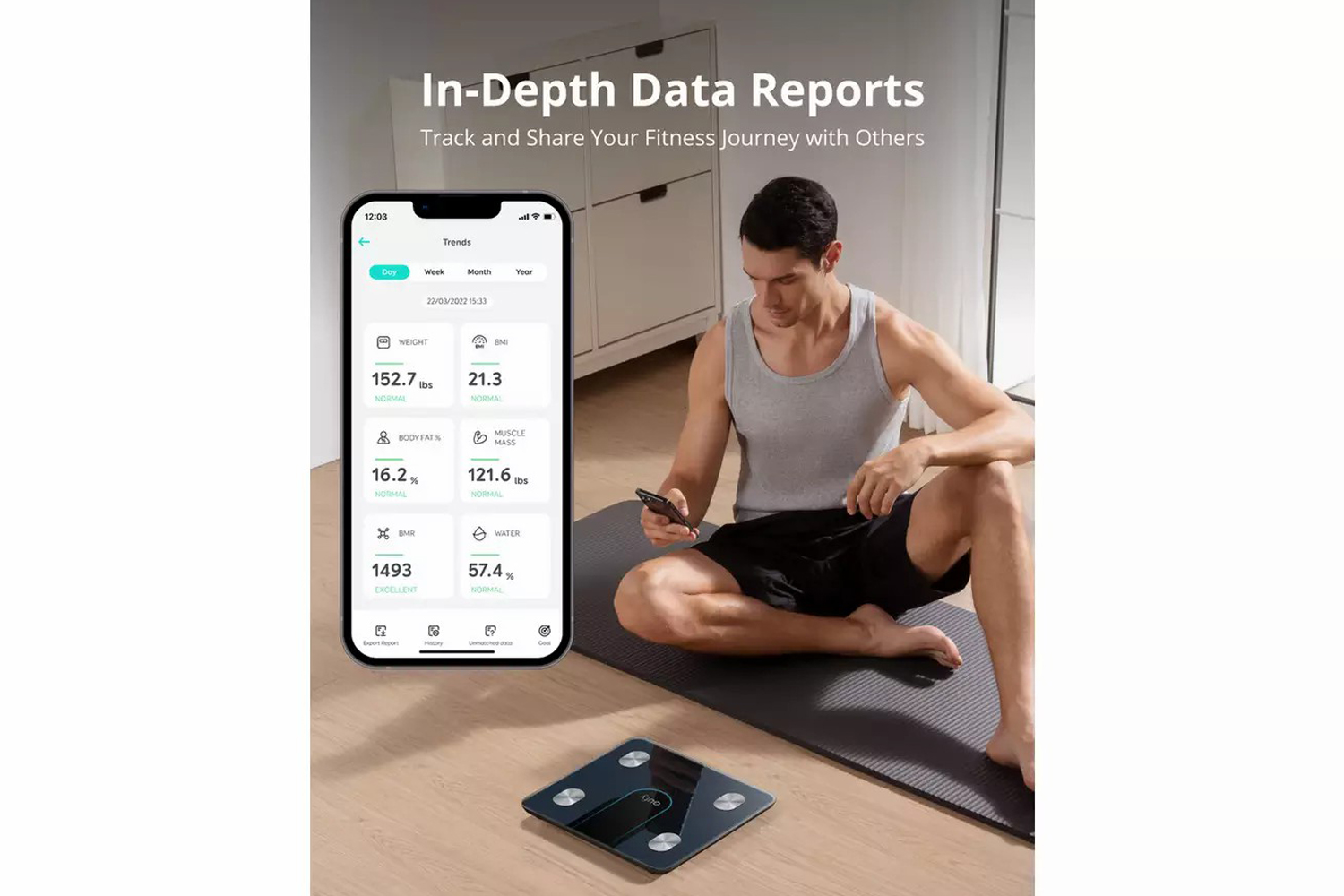 Upload your measurements to the EufyLife app. Afterwards, you can also sync with Apple Health, Google Fit, or Fitbit to keep your data all in one place.