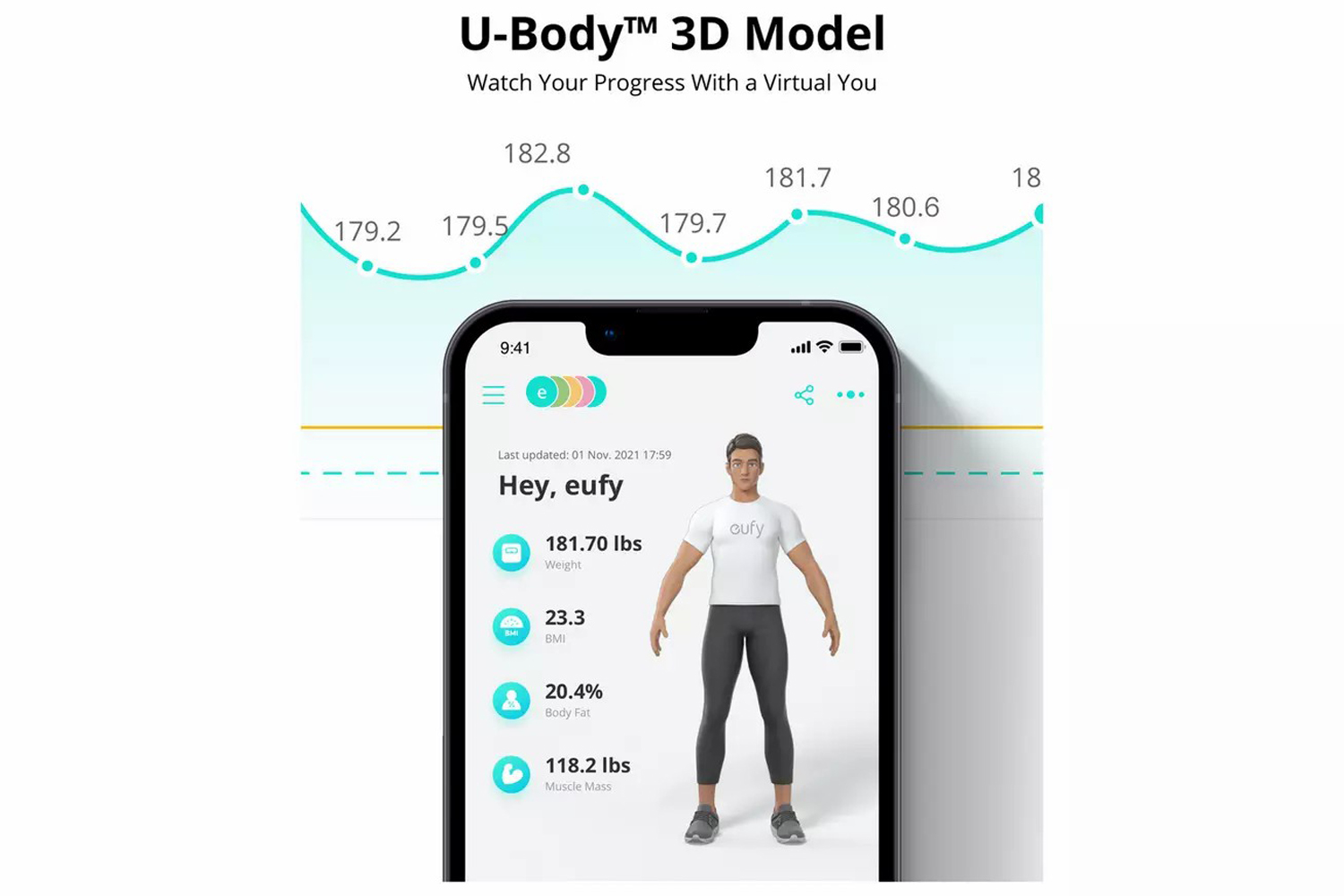 Keep track of the changes on your fitness journey via a 3D model.