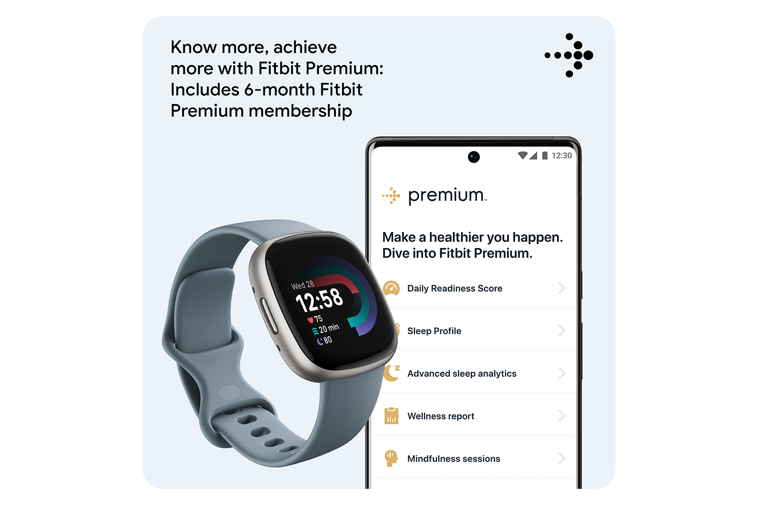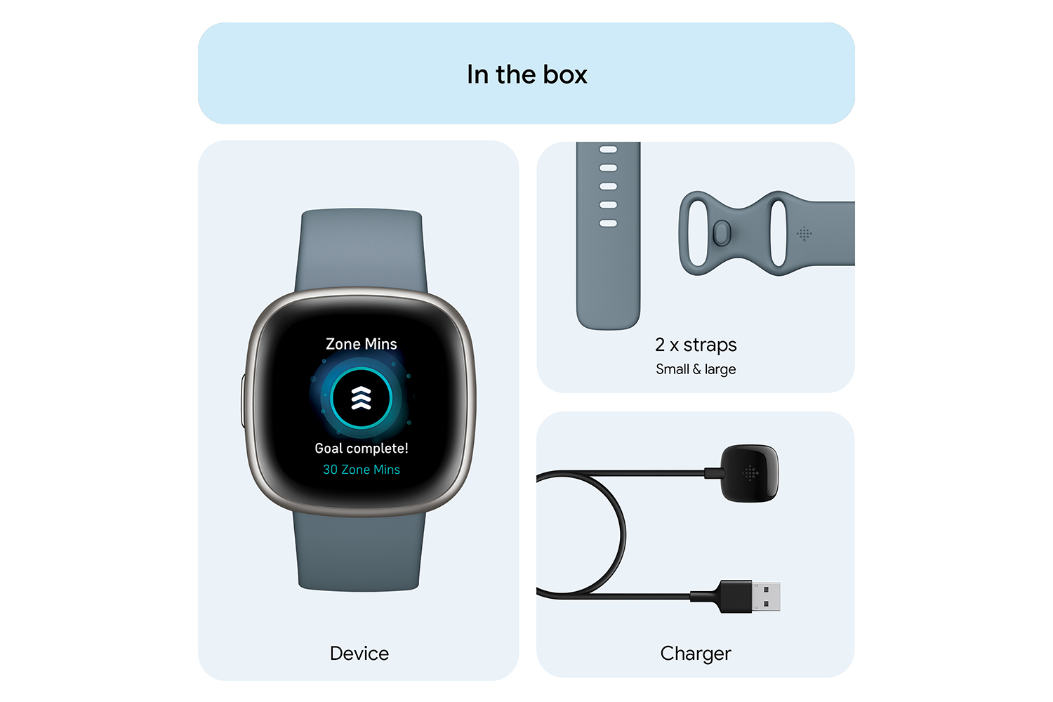 Fitbit Versa 4 Smartwatch | Waterfall Blue & Platinum is rated