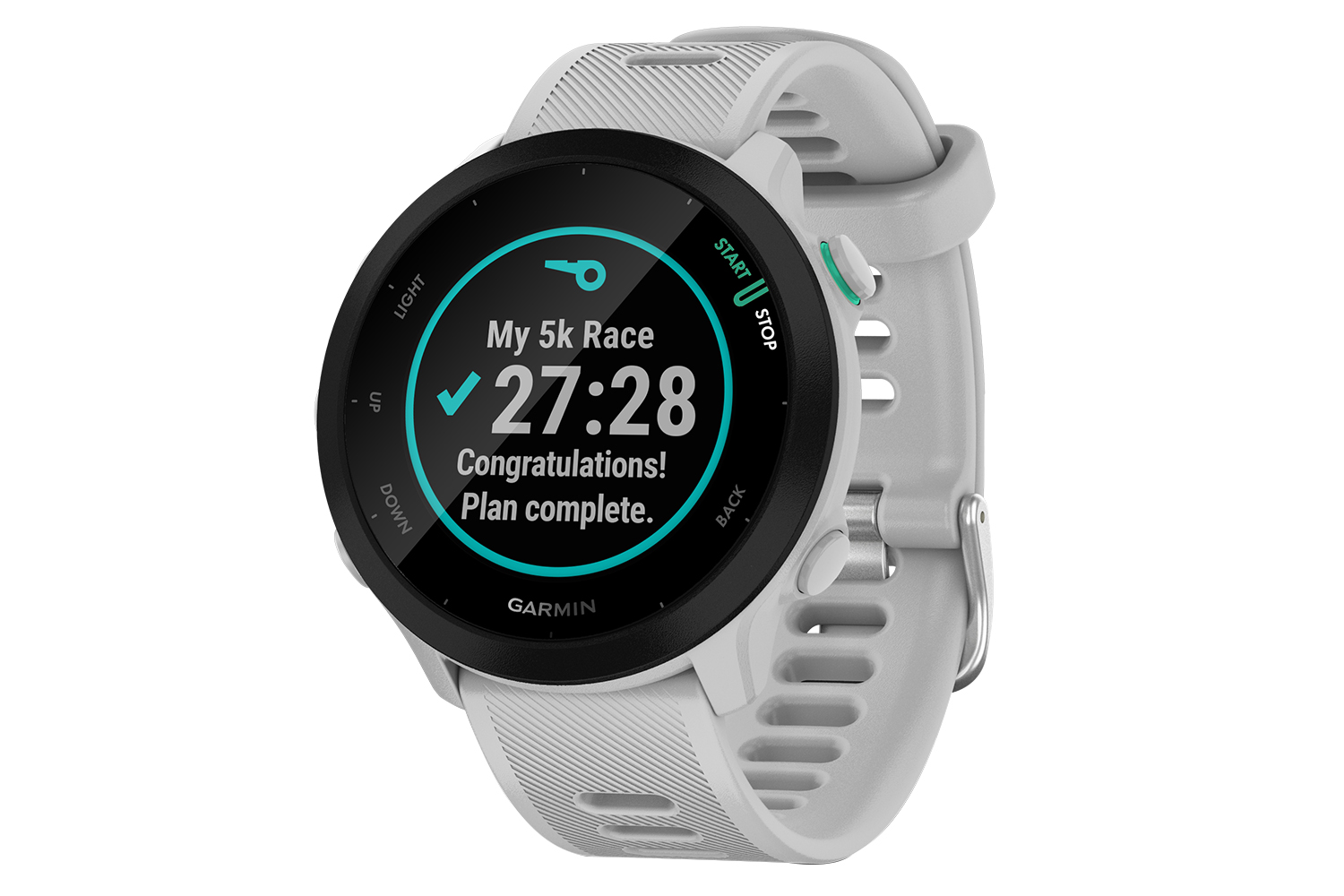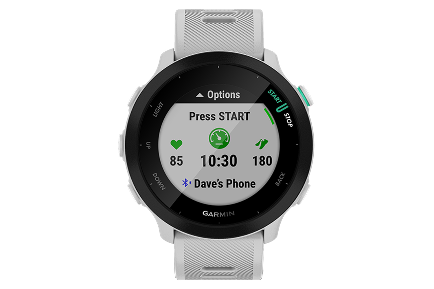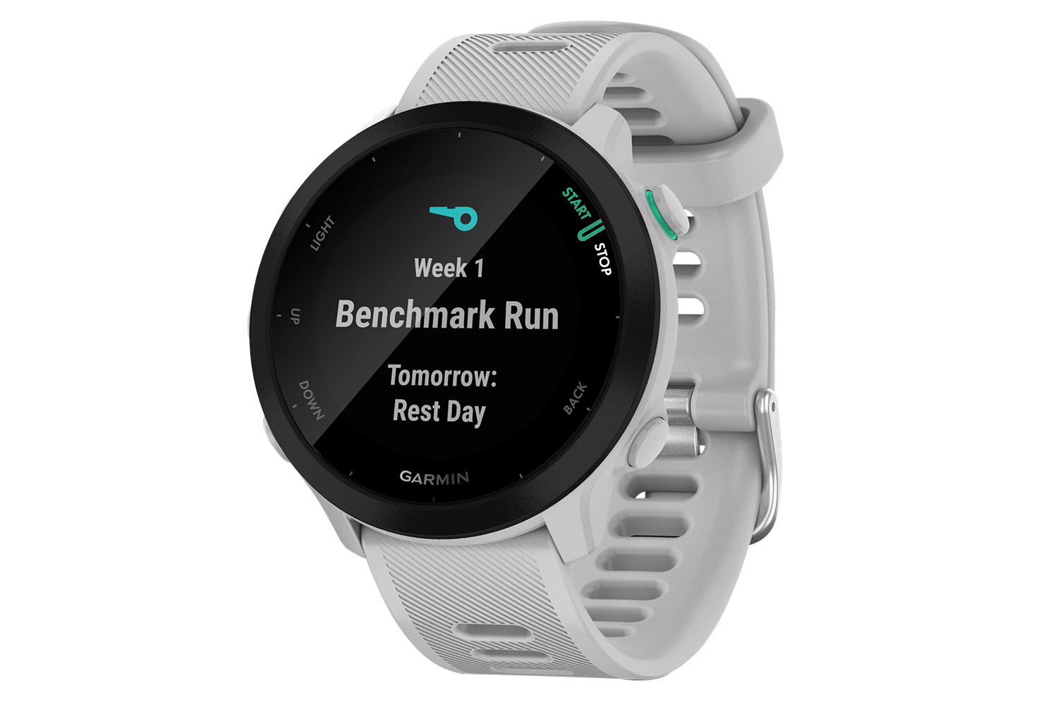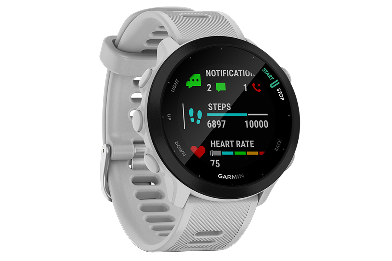 See yourself as a runner. Forerunner 55 is the easy-to-use GPS running smartwatch that encourages running and healthy lifestyles. With the simple press of a button, a user can start their run or walk and track their time, distance, speed, pace and heart rate1 right from their wrist. For those who want to take their running to the next level, this smartwatch offers detailed running data, daily suggested workouts, additional built-in sports apps and more. Track all-day activity, including steps, calories, sleep and more1. And you can get more runs in between charges, thanks to this smartwatch’s long battery life.