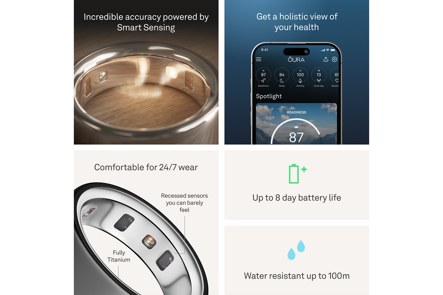 The latest evolution of the revolutionary smart ring. Oura Ring 4 brings you closer to what matters most - your health. The updated all titanium design is powered by smart sensing, a new sensing platform that doesn’t just measure your biometrics, it adapts to you, providing insights into over 30 biometrics Including sleep, Readiness, Activity, Heart health, Stress and women’s health. Oura Ring quietly and comfortably monitors your health and with up to 8 days of battery life - you can forget it’s even on.