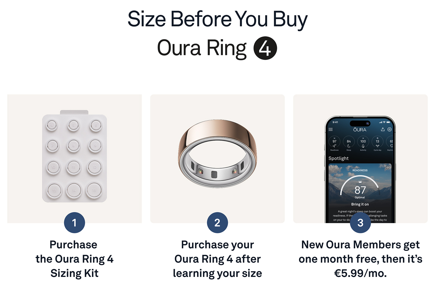 Size yourself with the Oura Ring 4 sizing kit before purchasing your Oura Ring 4.