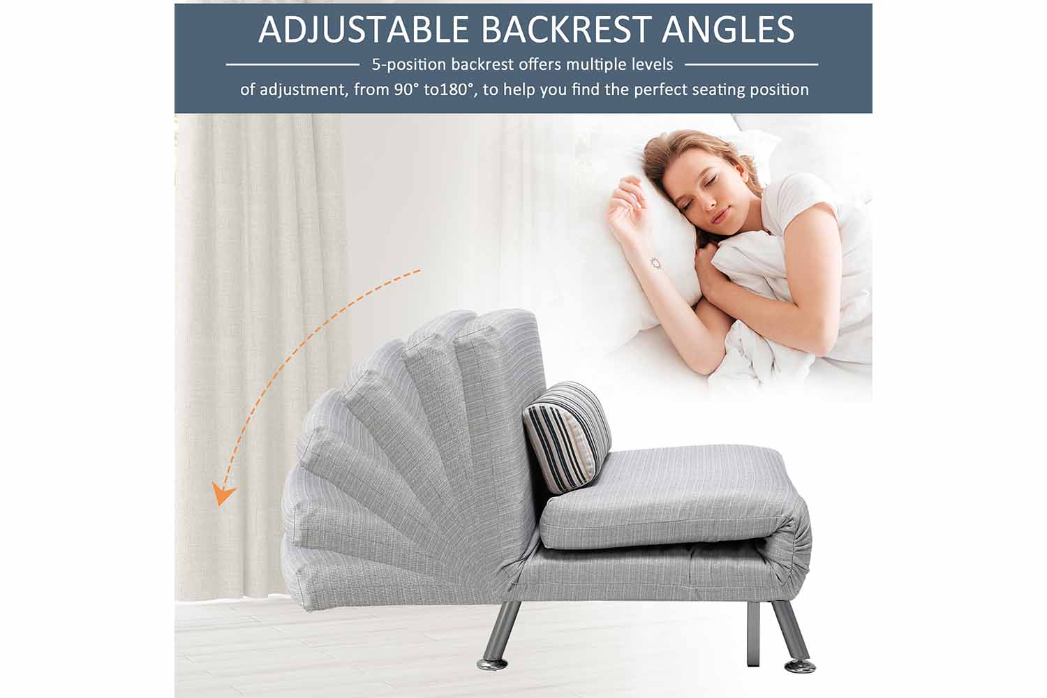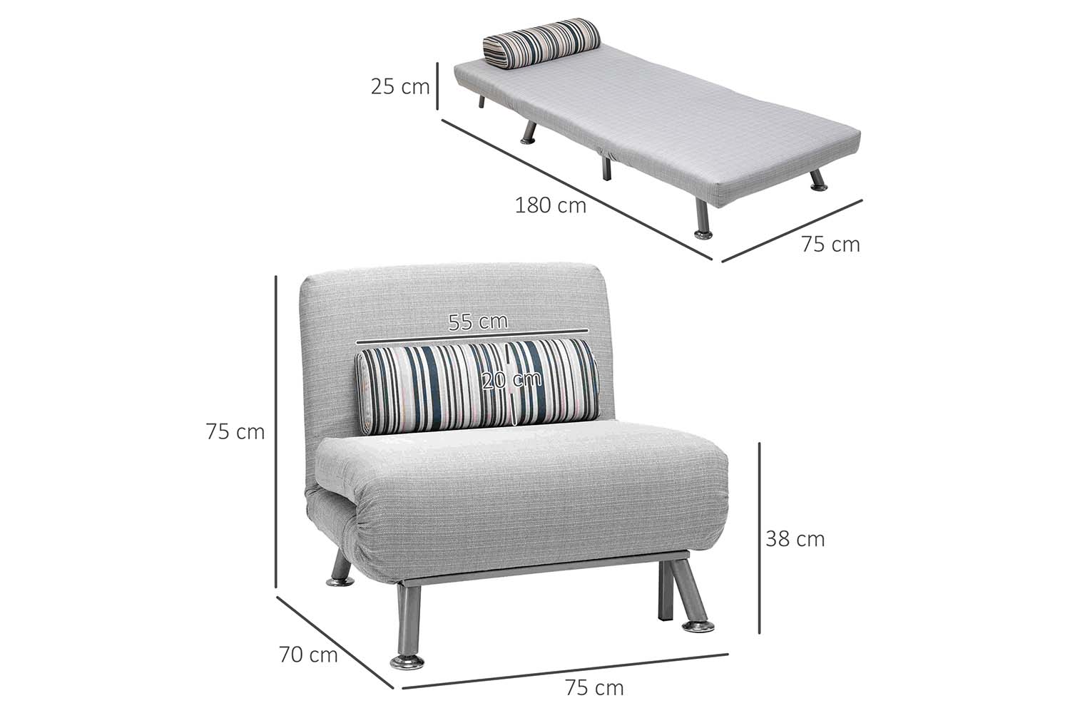 Switch from sitting to sleeping in an instant, thanks to this single sofa bed chair from Homcom. Using steel for the frame, the chair bed is solid and tough, and a five-level back to adjust to a position best for you. Filled with thick foam padding and wrapped in linen touch fabric for great comfort. This guest bed comes complete with a pillow for extra comfort and support. Now your guests will always have somewhere cosy to sleep when they come over for the night.