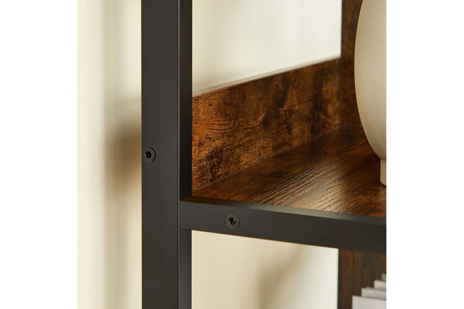Perfect for the living room, home office, or bedroom, this versatile bookcase is easy to assemble and comes with a comprehensive kit, including an anti-tip device for added safety—ideal for family homes. The compact footprint (80 x 33 cm) means it fits neatly into smaller spaces, making it a smart choice for apartments or rooms where space is at a premium. Its rustic brown finish brings warmth and character, while the black steel accents add a modern edge, ensuring this bookcase stands out as a statement piece in any setting.