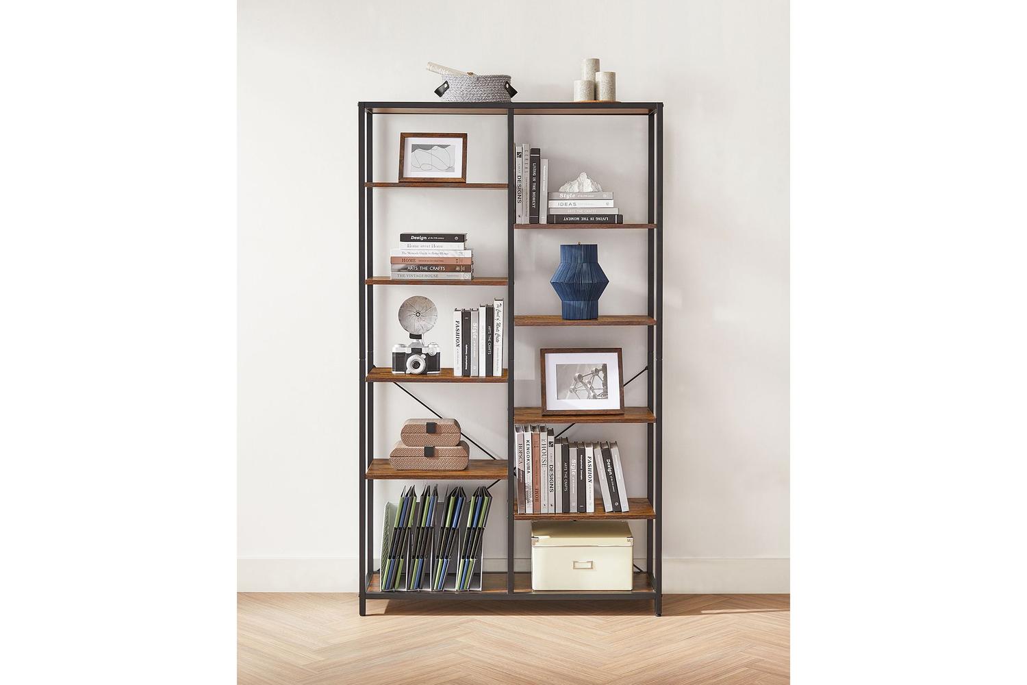 Upgrade your home organisation and create a focal point in any room with this eye-catching bookcase. Its blend of rustic and industrial elements makes it a popular choice for those seeking both style and practicality. Perfect for book lovers, collectors, or anyone looking to maximise their storage space with a touch of sophistication.