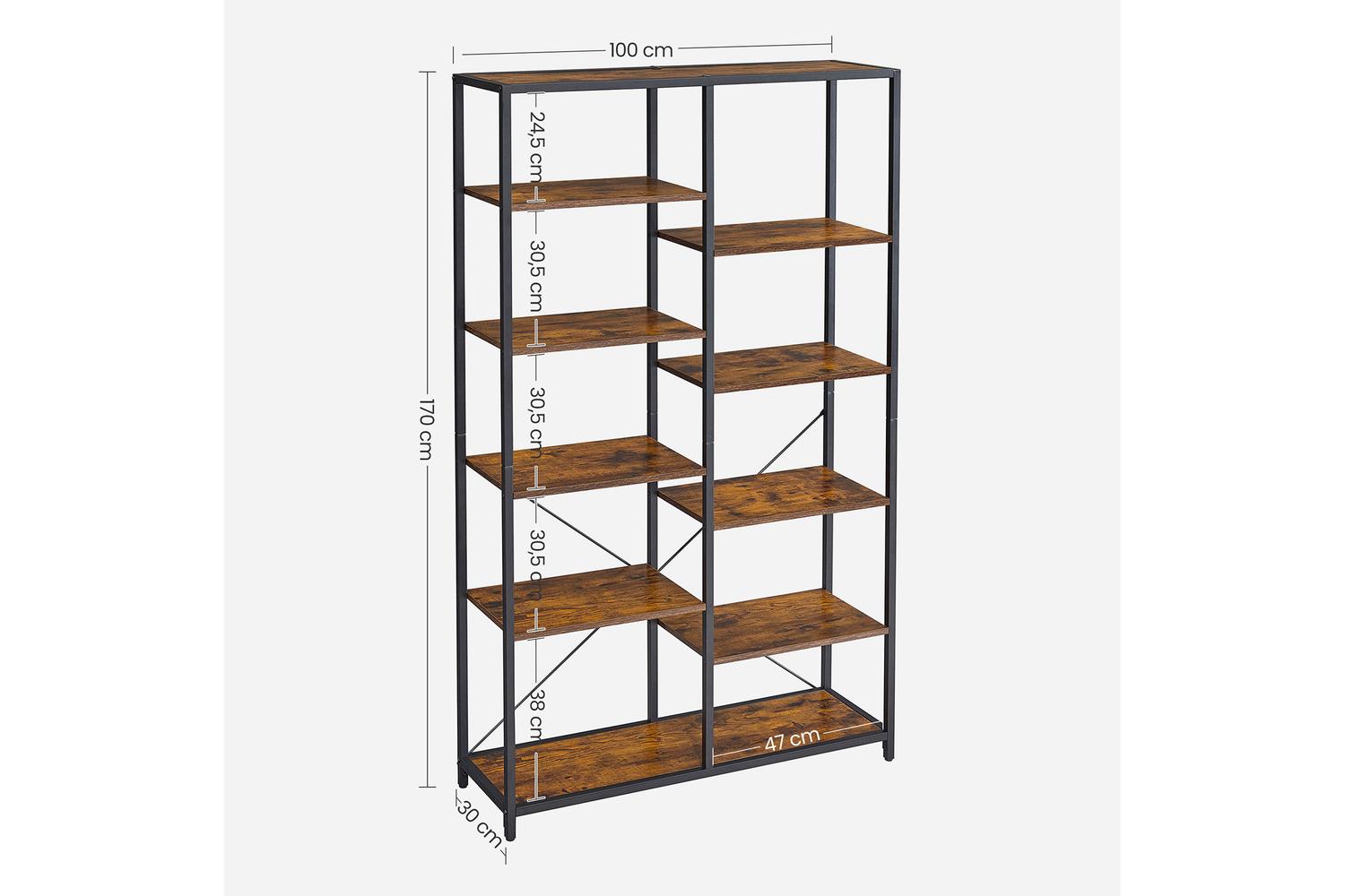 Measuring 100 x 30 x 170 cm, the VASAGLE Bookcase provides ample storage without overwhelming your space. Its robust construction supports a maximum static load of 50 kg, ensuring your books and decorative items are safely displayed. The combination of chipboard shelves and a sturdy steel frame guarantees long-lasting performance, while the rustic brown finish adds warmth and character to your décor. The open shelving design allows for easy access and flexible arrangement, making it ideal for showcasing everything from hardbacks to houseplants.
