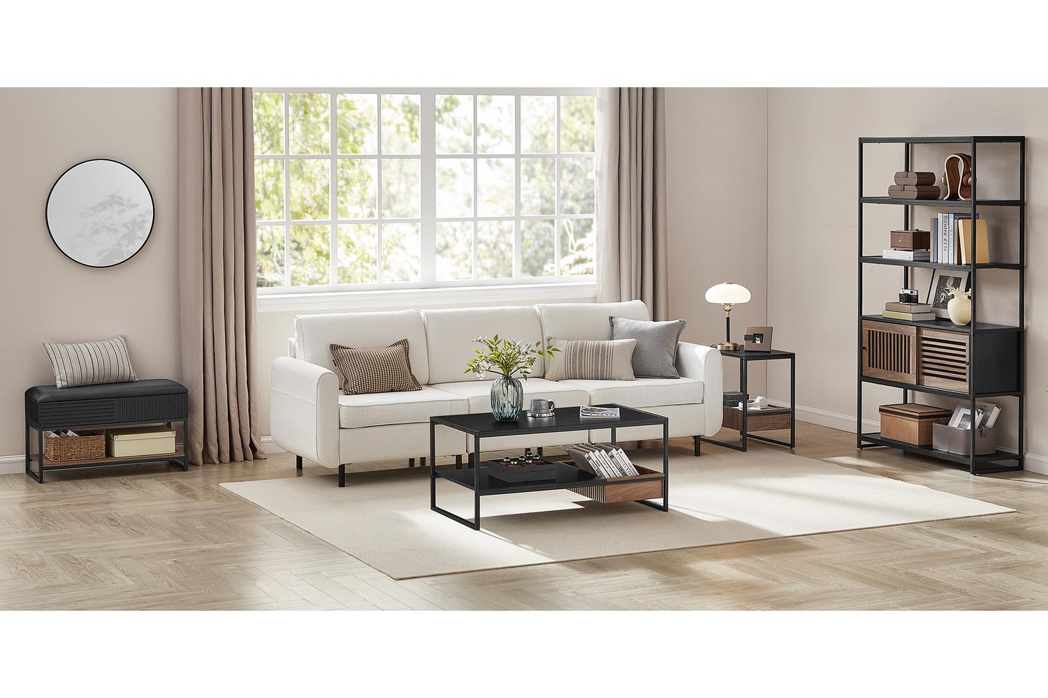 - Open and concealed storage options for versatility