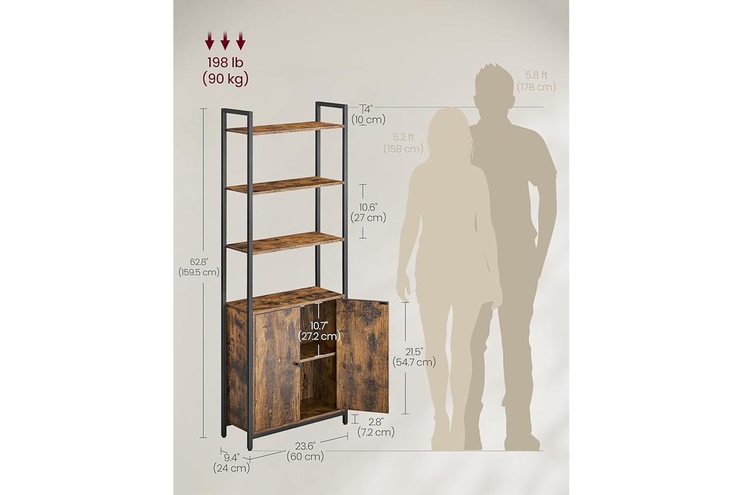 With a maximum weight capacity of 198 pounds, you can confidently store heavy hardbacks, decorative items, or even small plants. The compact footprint (24 x 60 cm) means it fits neatly into tight spaces, making it suitable for apartments, bedrooms, or home offices. The rustic brown and ink black finish adds warmth and sophistication, elevating the look of any room while keeping your belongings organised and accessible.