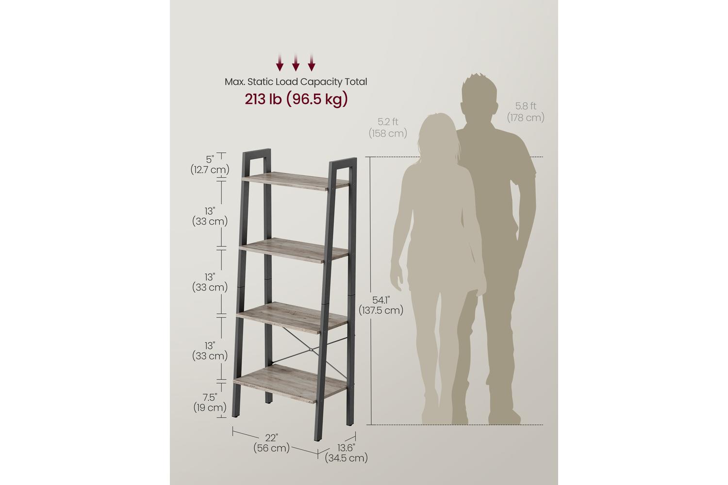 Crafted from durable chipboard and sturdy steel, the VASAGLE Ladder Shelves offer a reliable solution for organising your essentials. The grege and grey colour palette blends seamlessly with a wide range of interiors, making it a versatile addition to both modern and traditional Irish homes. With its compact dimensions of 34 x 56 x 137 cm, this bookcase fits neatly into corners and smaller spaces, helping you make the most of every inch.