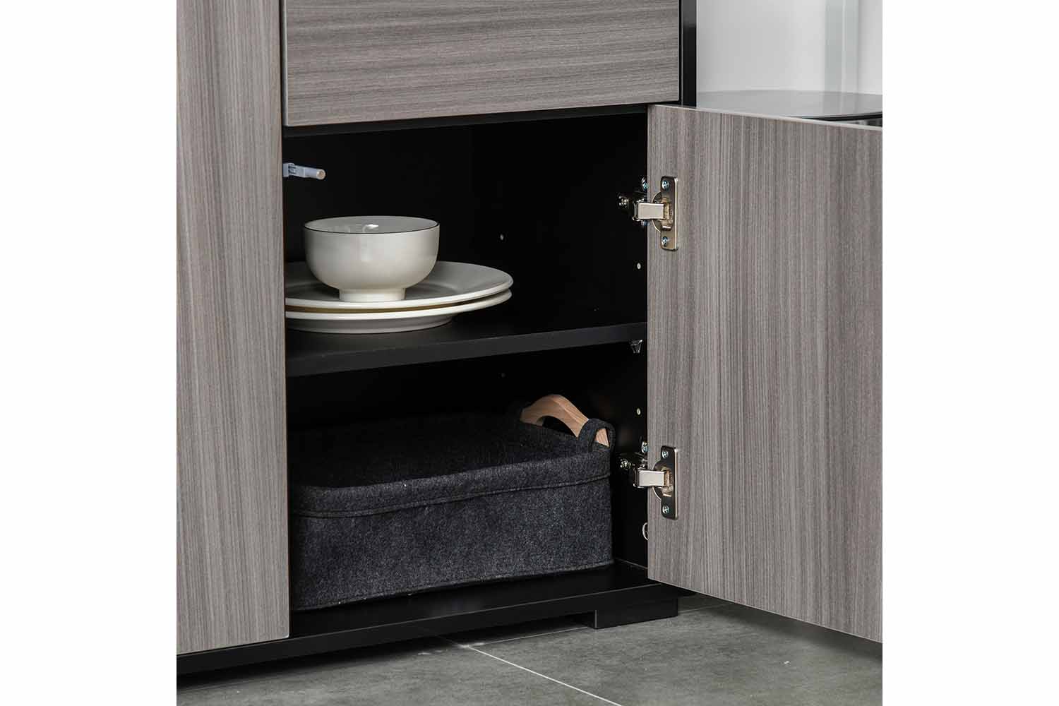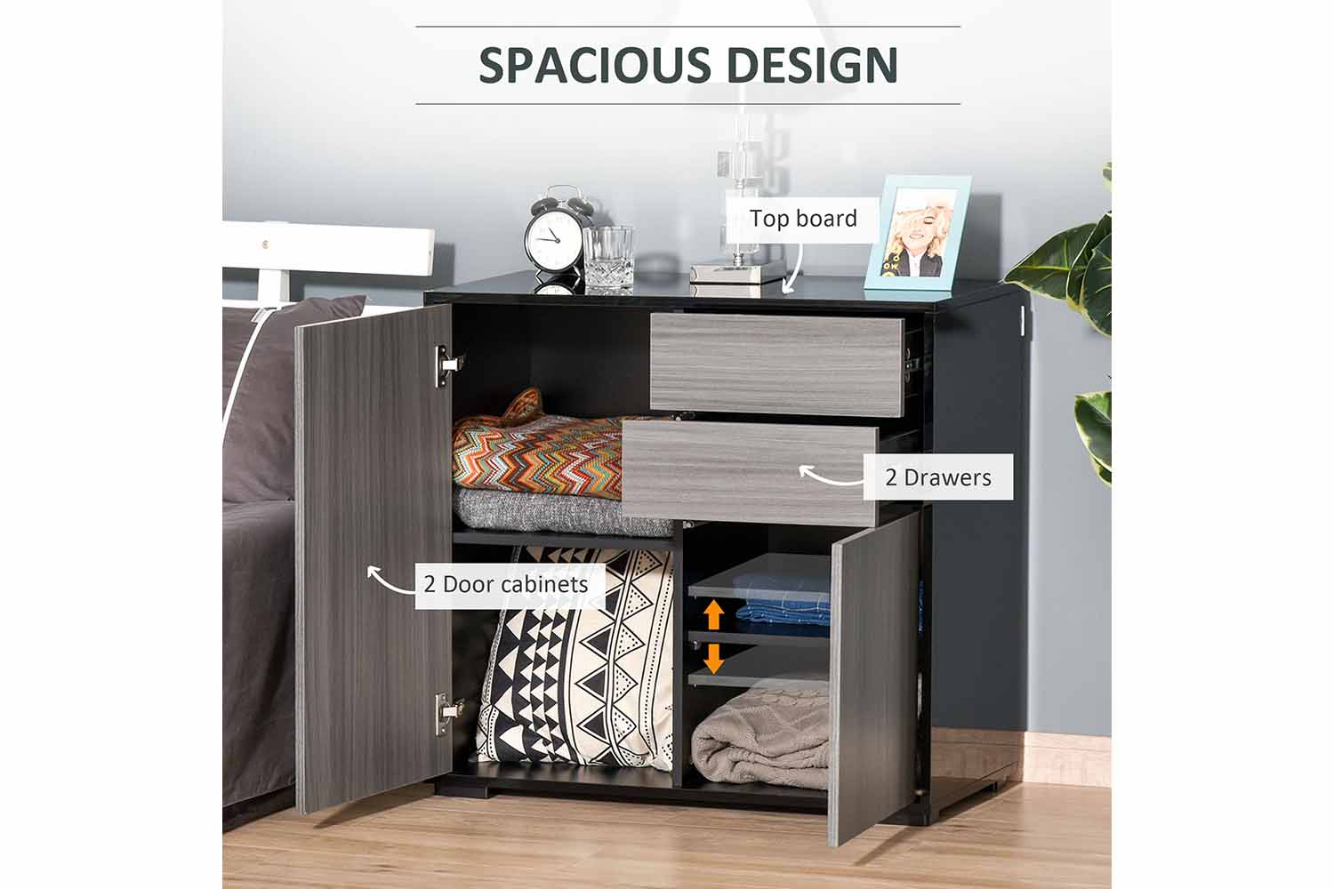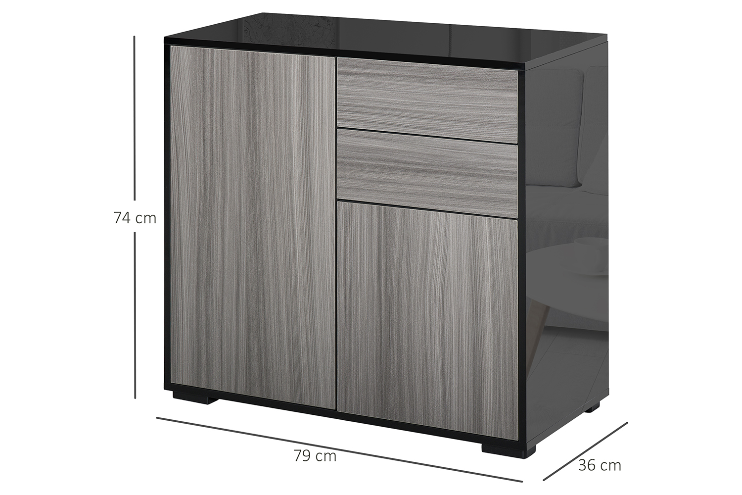 This Homcom cabinet is a durable and stylish addition to every home, keeping your space clean and tidy with ease. It's made from MDF for a durable structure, with anti-tipping straps on the back for safety. The practical design, with the push-click drawers and cabinet doors makes them quick and effortless to open and close. The elevated base allows air to flow through for freshness. An effortless way to bring in sleek style into your living space.