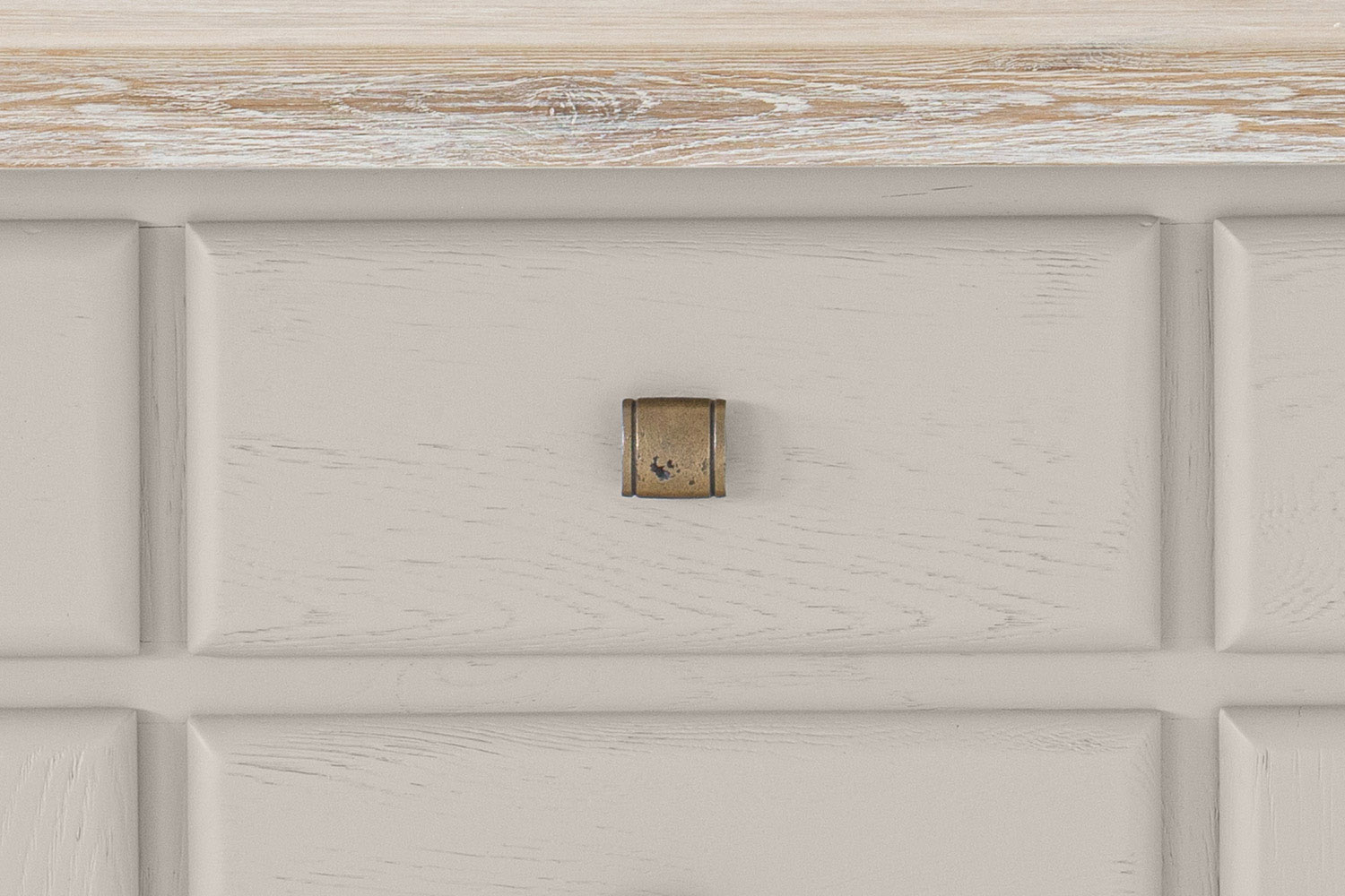 Crafted from oak wood with a painted pebble wash-top finish, the Savannah sideboard radiates a warmth and comfort that only wood designs provide. The stepped detailing on the legs and muted hues gives this table a rich finish. This exquisite piece is the ideal addition to any dining room. It provides ample space on top for prepping or decorative pieces, while the six drawers and two cupboards keep all your dining essentials in an easy to reach place.