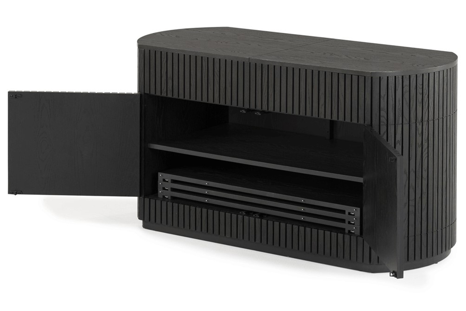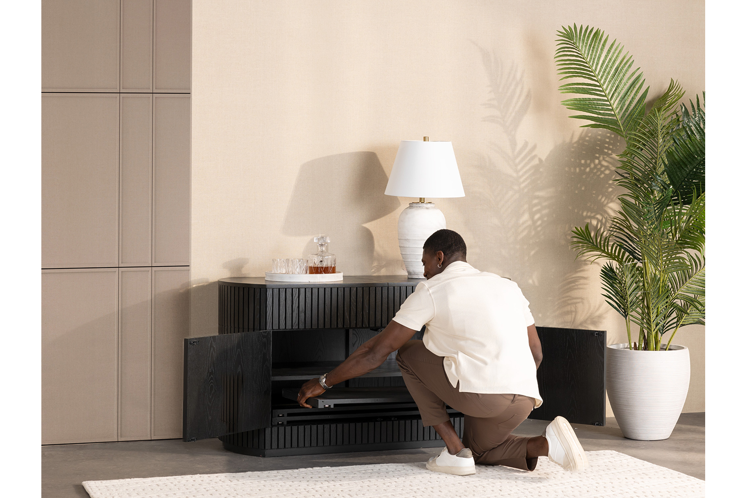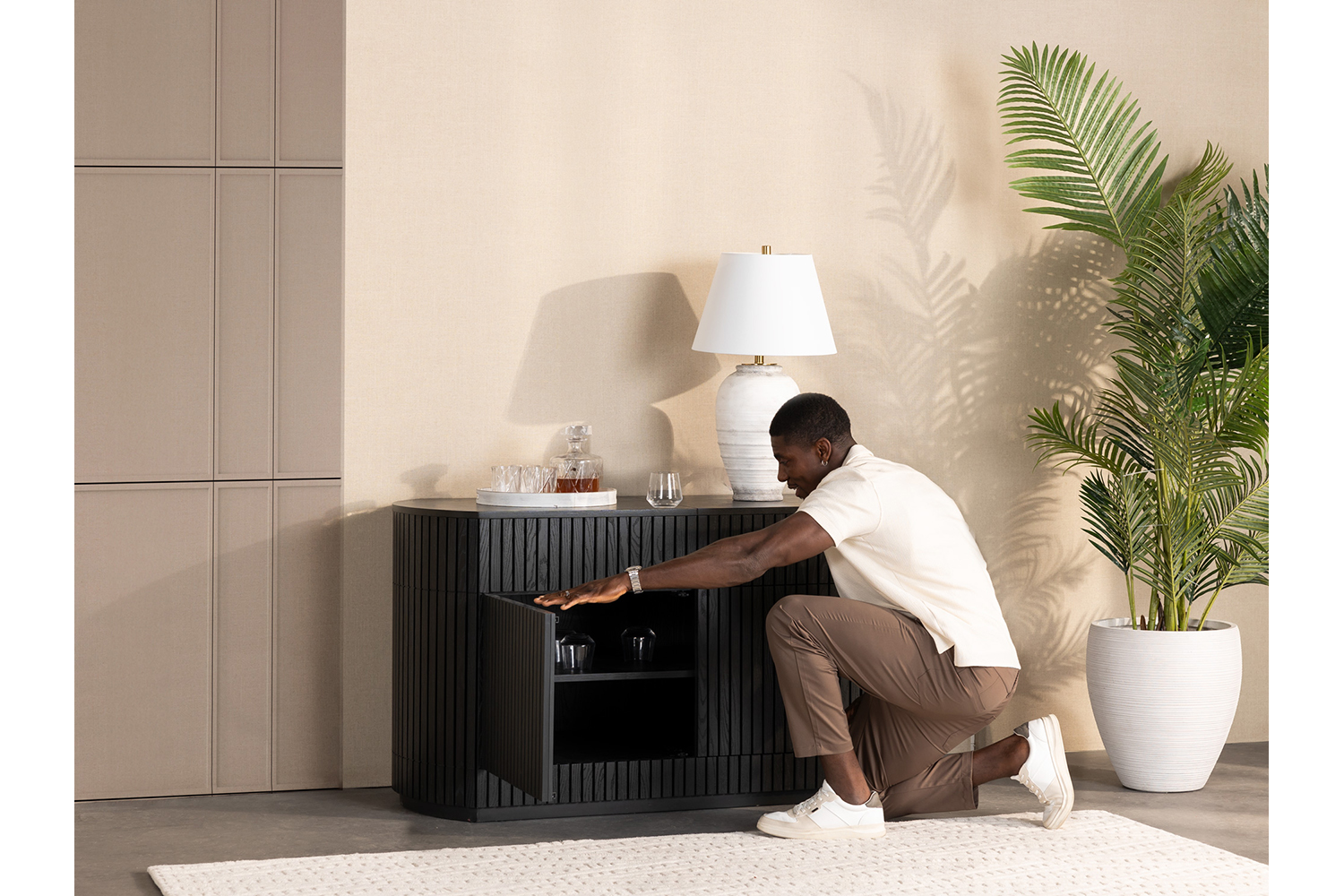 The Transformer Round Sideboard – Panel Storage is a modern storage solution designed to complement your round dining table while keeping your essentials beautifully hidden. Featuring a curved silhouette and vertical sliding panels, this sideboard brings sophistication and smart organisation to any interior.