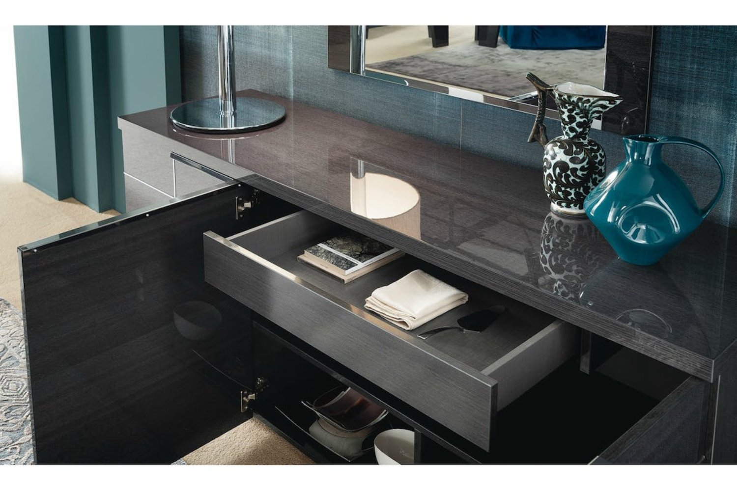 A large inner drawer, idea for accessories or cutlery, further increases the functionality of this beautiful sideboard.