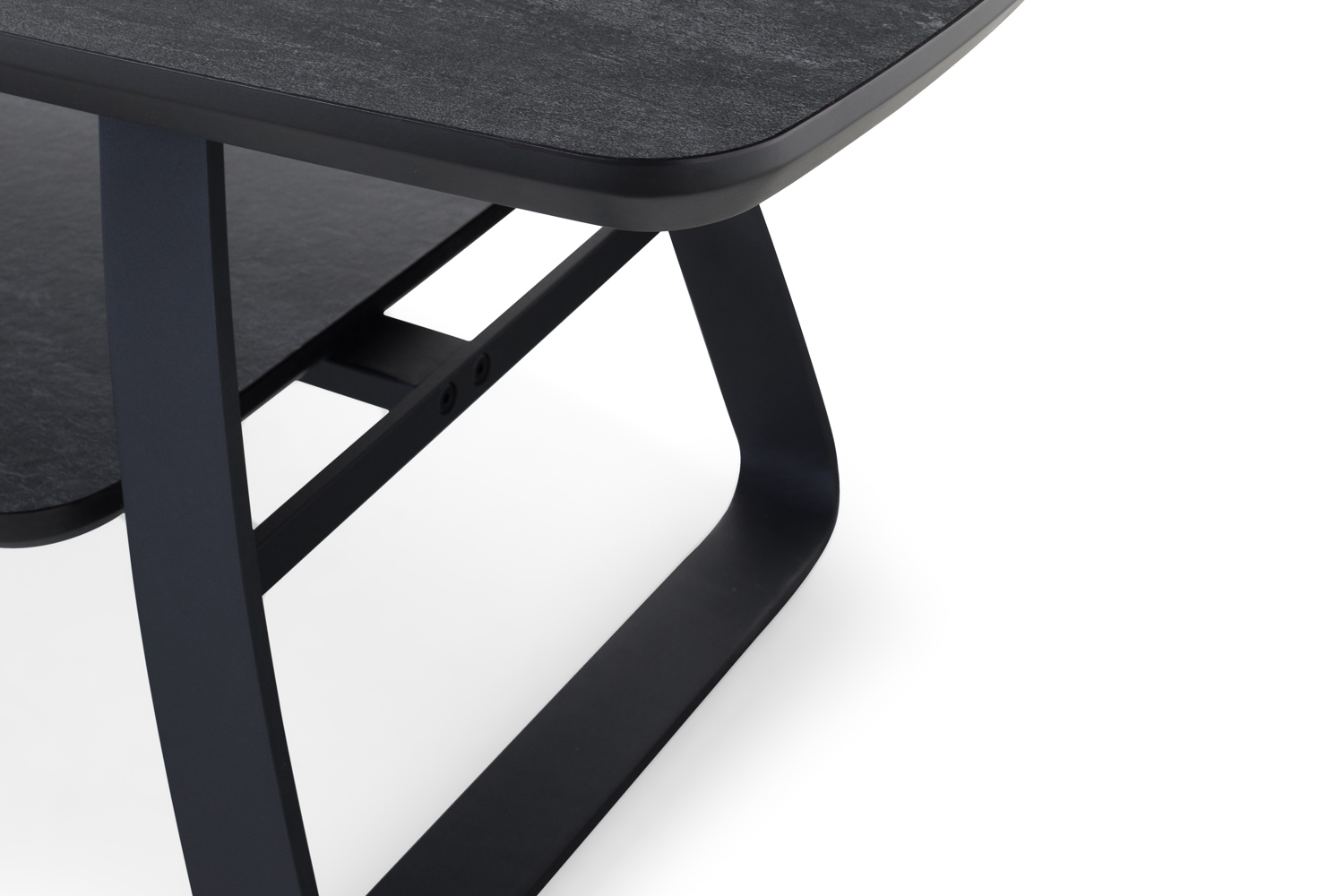 Offering versatility and style, the Bas TV unit is a must have in any contemporary home. It features a melamine base tabletop that is highly resistant and incredibly durable being both heat and scratch resistant. It’s complete with the sleek black metal legs in a unique curved design that further emphasizes the modern look. Perfect for hosting your TV and consoles, it features a very spacious tabletop with a shelf underneath.
