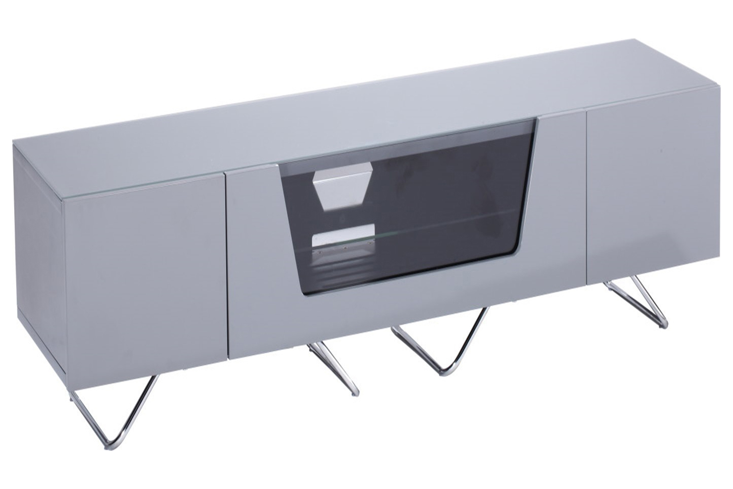 Featuring a colored high gloss finish clad in matching glass and supported by a discreet steel frame, the Chromium range of TV stands epitomizes contemporary furniture designs. The flip-down door is complete with IR friendly glass, soft opening hinge and magnetic catch, and holds a toughened glass shelf and 2 storage compartments.
