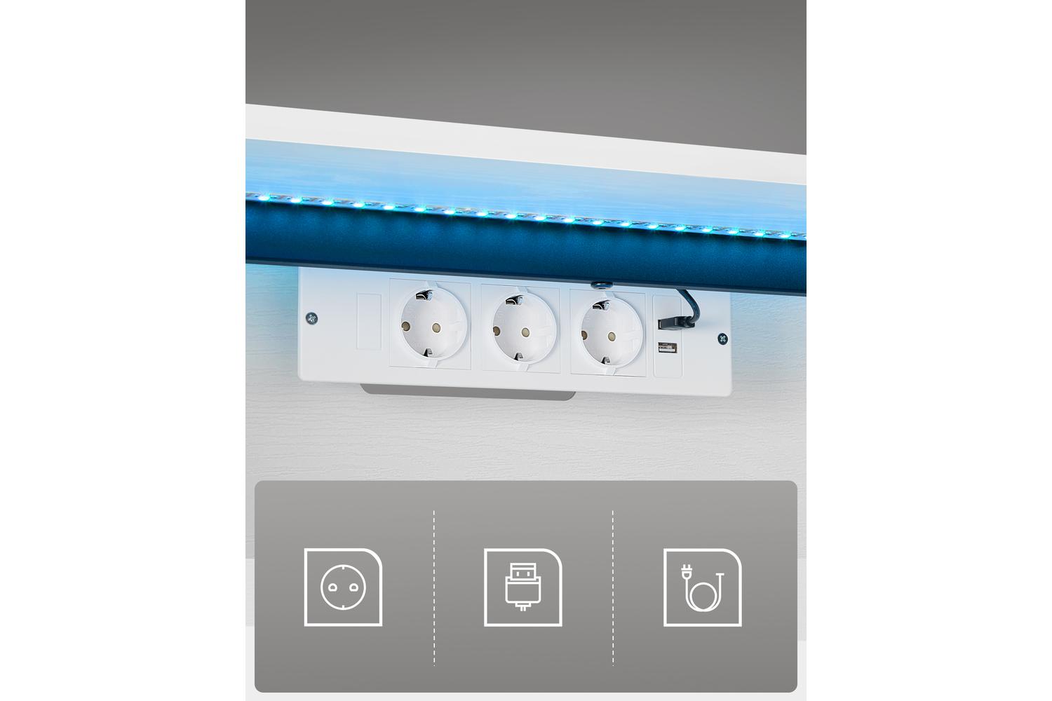 Stay connected and organised with the built-in charging station, featuring three AC outlets and two USB-A ports. Power your TV, speakers, game consoles, and more without the hassle of tangled cables or searching for extra sockets. The integrated LED strip adds a touch of ambience, offering three lighting modes and seven vibrant colours. Easily adjust the mood with the included remote control, perfect for movie nights, gaming sessions, or relaxing evenings at home.