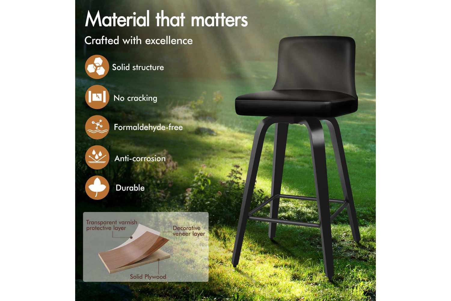 Not only with its iconic design and timeless appeal, it is also cozy and practical. Upholstered in premium PU leather, the seat and backrest are richly padded with high-resilience foam and comfortable. Thanks to its high-density foam, they provide adequate support in the right places for a delightful sitting experience. Together with its heavy duty and swivel mechanism, this bar stool can be rotated all around for easy facing in any direction, which makes your conversations smoothie.