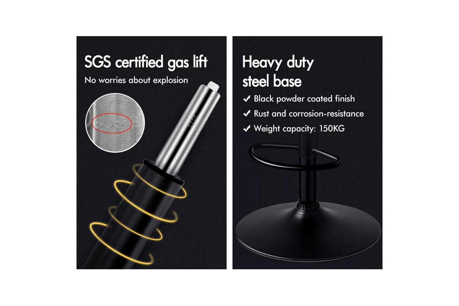As always, we have no compromise on materials used. Diameter of the base is increased, resulting in larger supporting area, so the seat becomes more secure and stable with long-lasting durability. Better still, the black powder coated chrome base and footrest complement the stool's modern design. A rubber floor protector ring, embedded in the case, reduces noise and protects your floor by sliding smoothly when you need to move the stool.