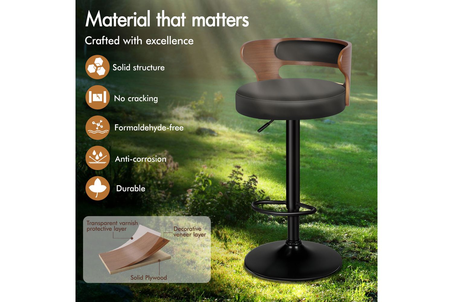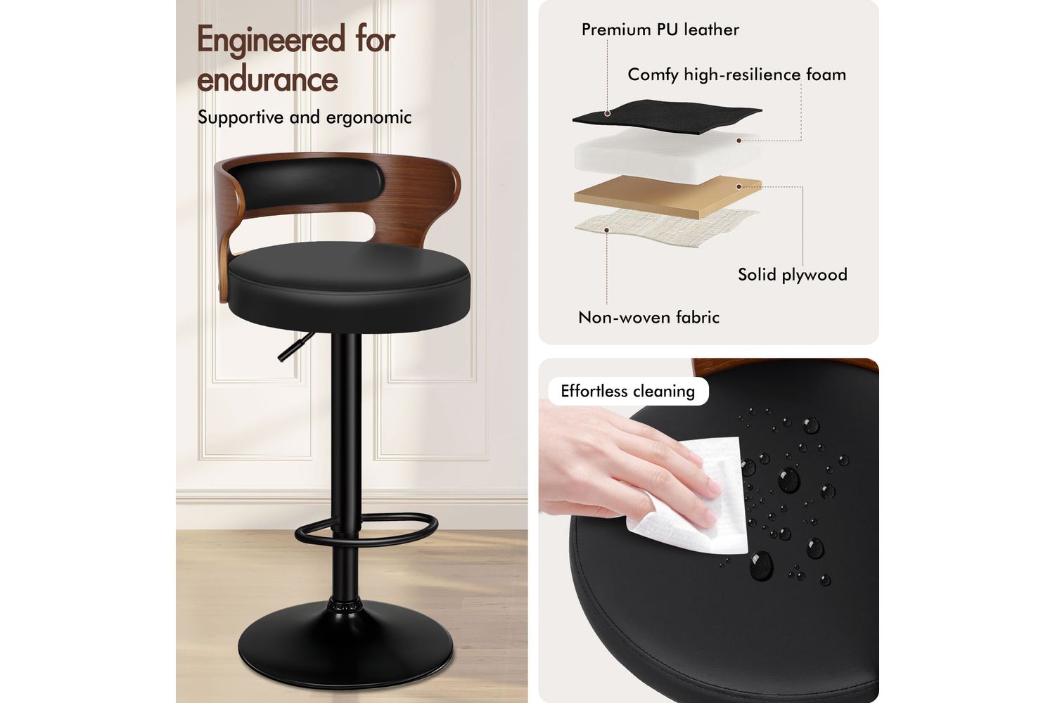 - Seat material: Solid plywood and PU leather