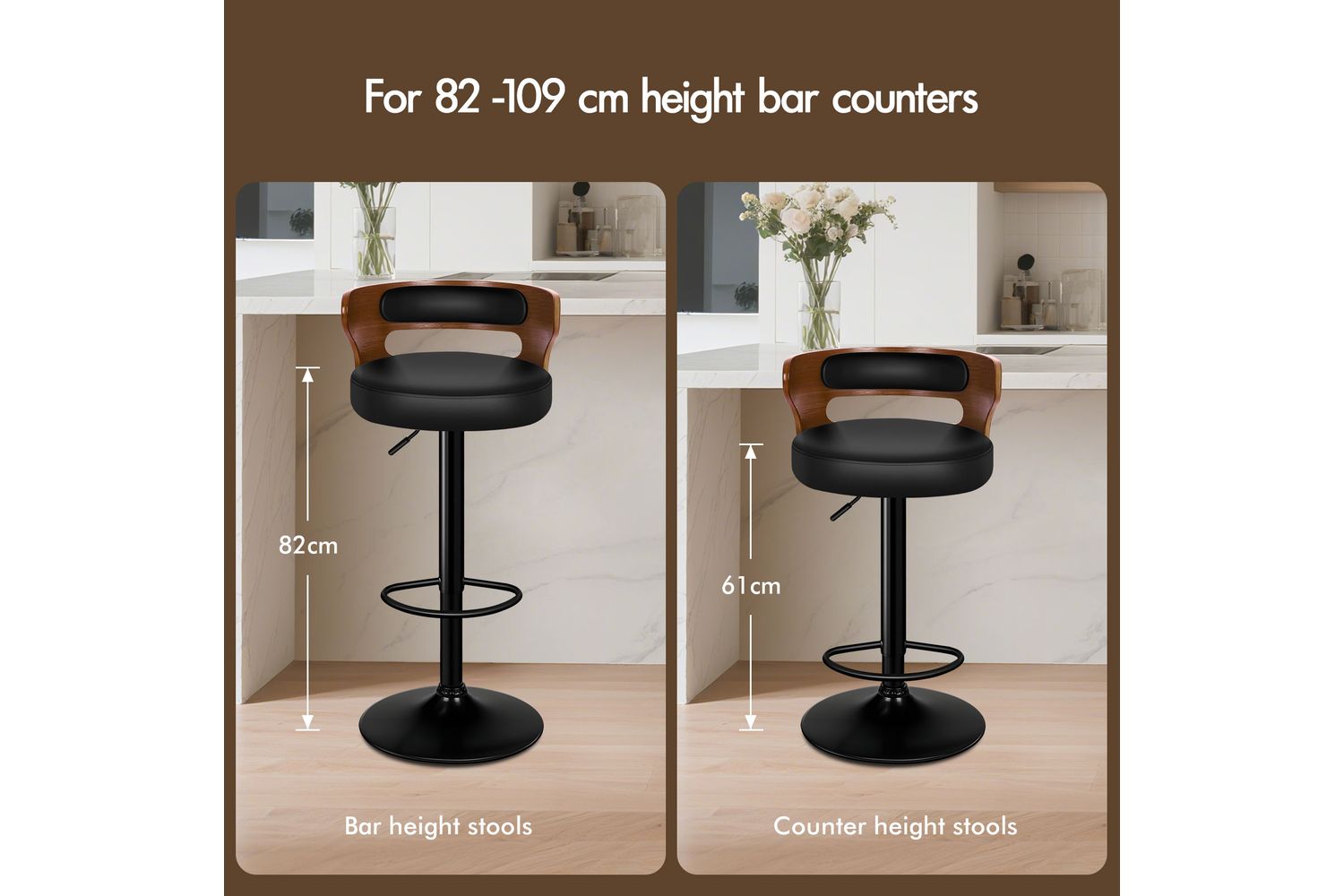Alfordson Bar Stool | Swivel | Black/Brown | Set of 2 is rated