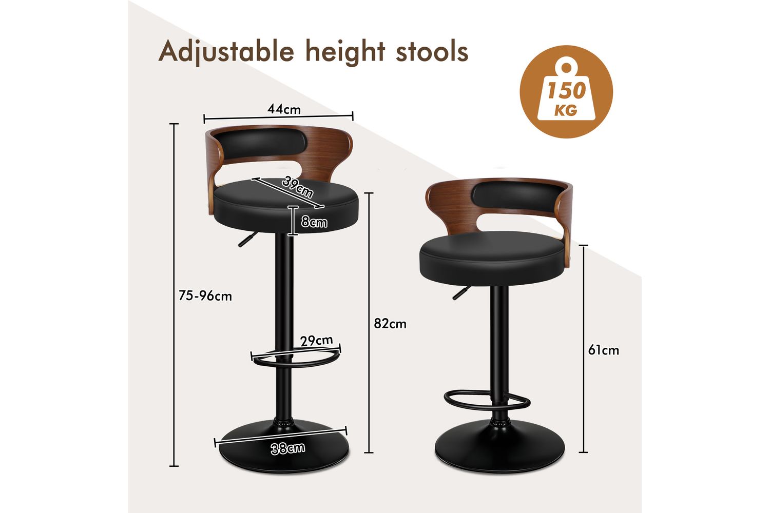 - Seat height: 61 - 82cm