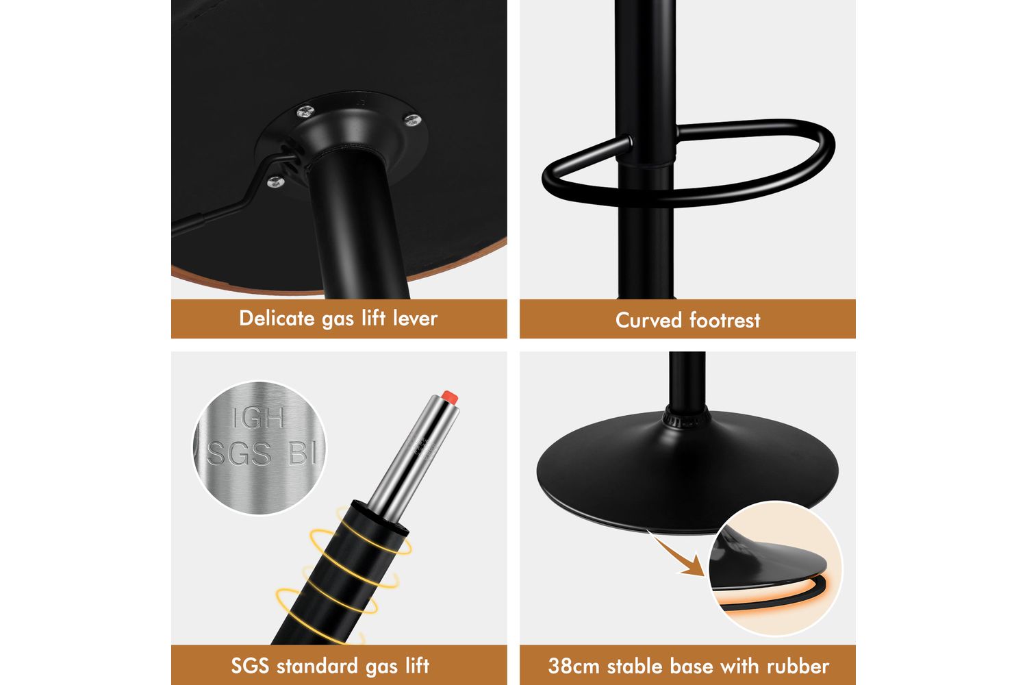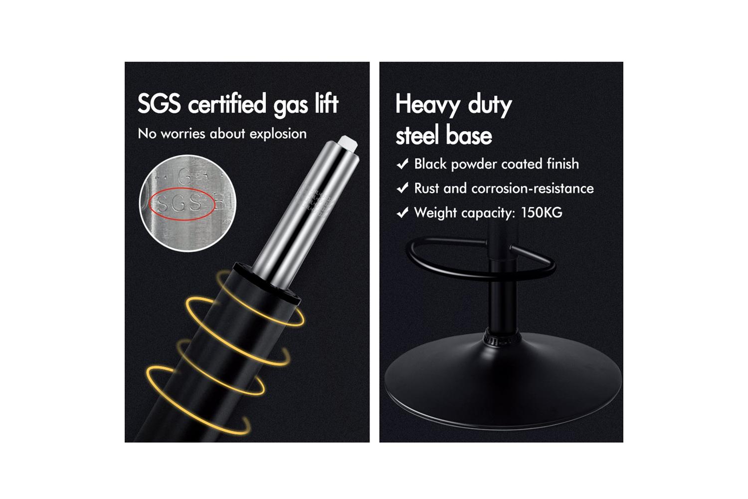 As always, we have no compromise on materials used. Diameter of the base is increased, resulting in larger supporting area, so the seat becomes more secure and stable with long-lasting durability. Better still, the black powder coated chrome base and footrest complement the stool's modern design. A rubber floor protector ring, embedded in the case, reduces noise and protects your floor by sliding smoothly when you need to move the stool.