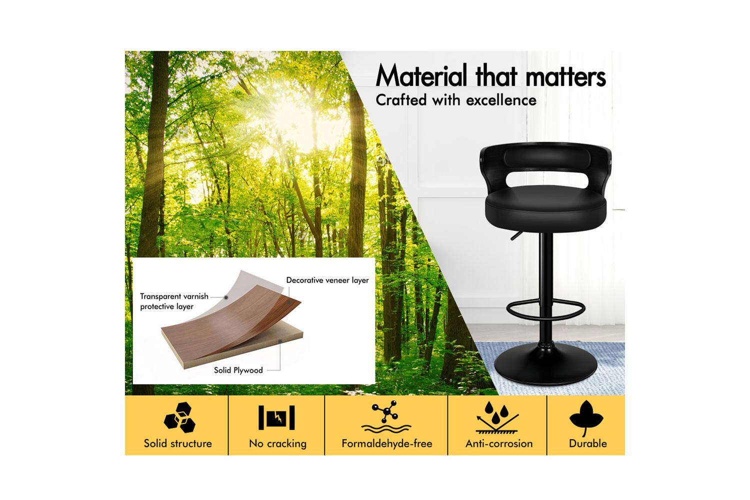 - Seat material: Solid plywood and PU leather