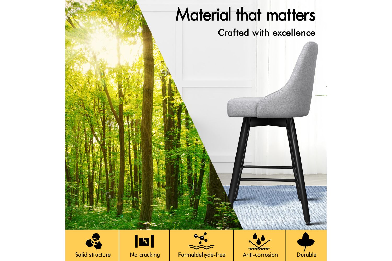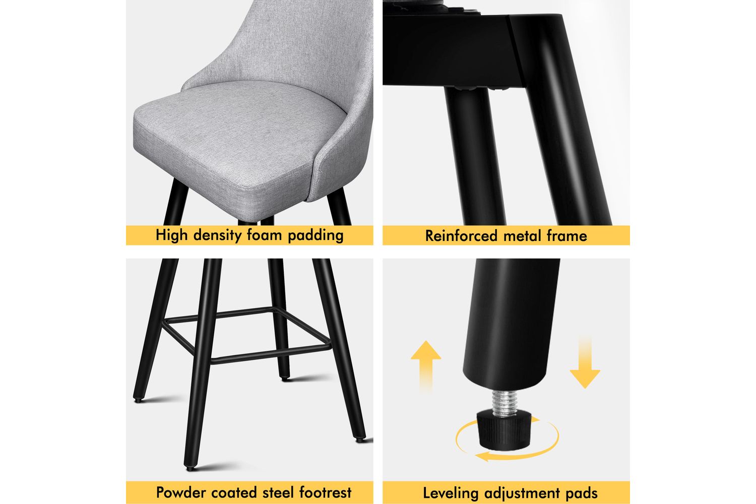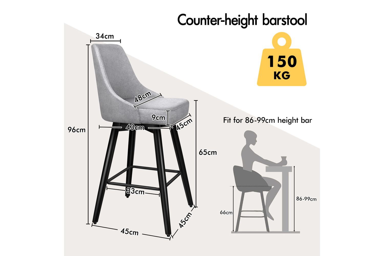 Not only with its iconic design and timeless appeal, it is also cozy and practical. Upholstered in premium linen fabric, the seat and backrest are richly padded with high-resilience foam and comfortable. Thanks to its high-density foam, they provide adequate support in the right places for a delightful sitting experience. Together with its heavy duty and swivel mechanism, this bar stool can be rotated all around for easy facing in any direction, which makes your conversations smoothie.