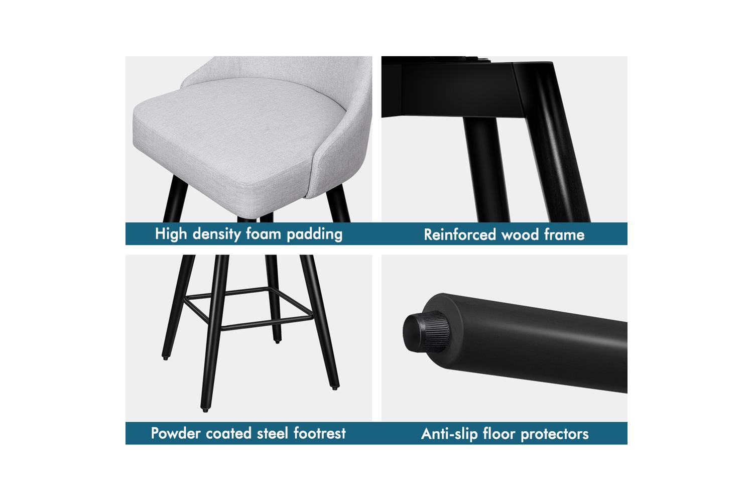Not only with its iconic design and timeless appeal, it is also cozy and practical. Upholstered in premium linen fabric, the seat and backrest are richly padded with high-resilience foam and comfortable. Thanks to its high-density foam, they provide adequate support in the right places for a delightful sitting experience. Together with its heavy duty and swivel mechanism, this bar stool can be rotated all around for easy facing in any direction, which makes your conversations smoothie.