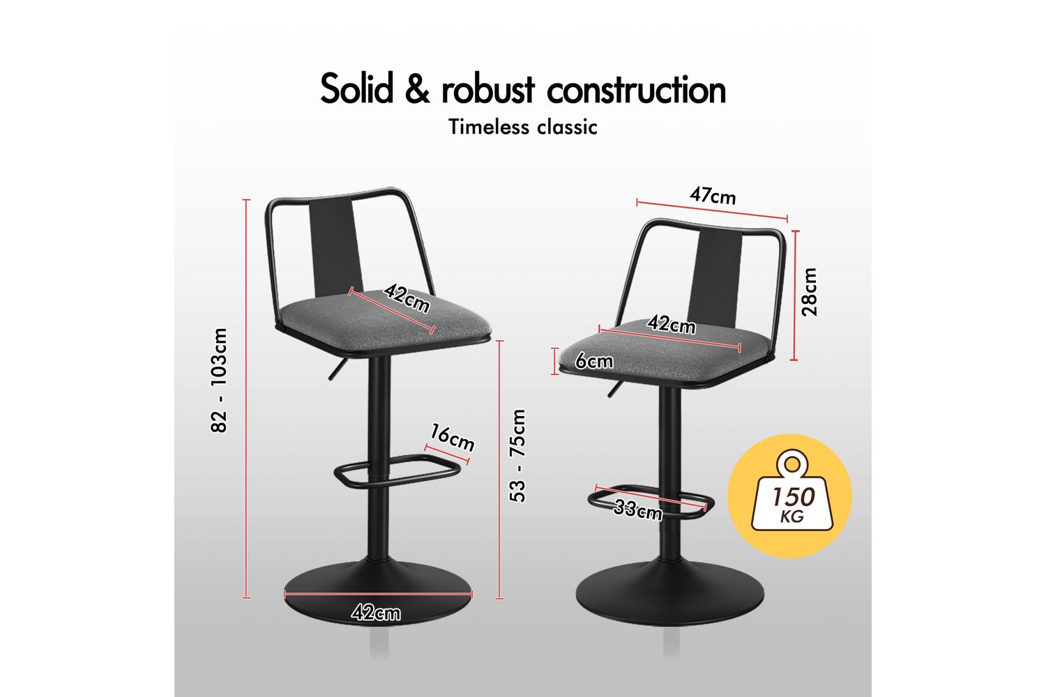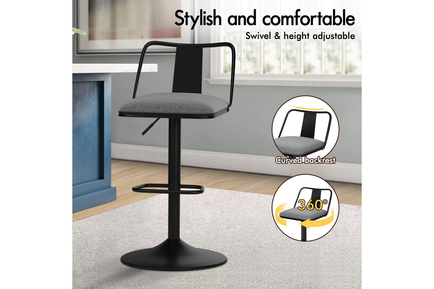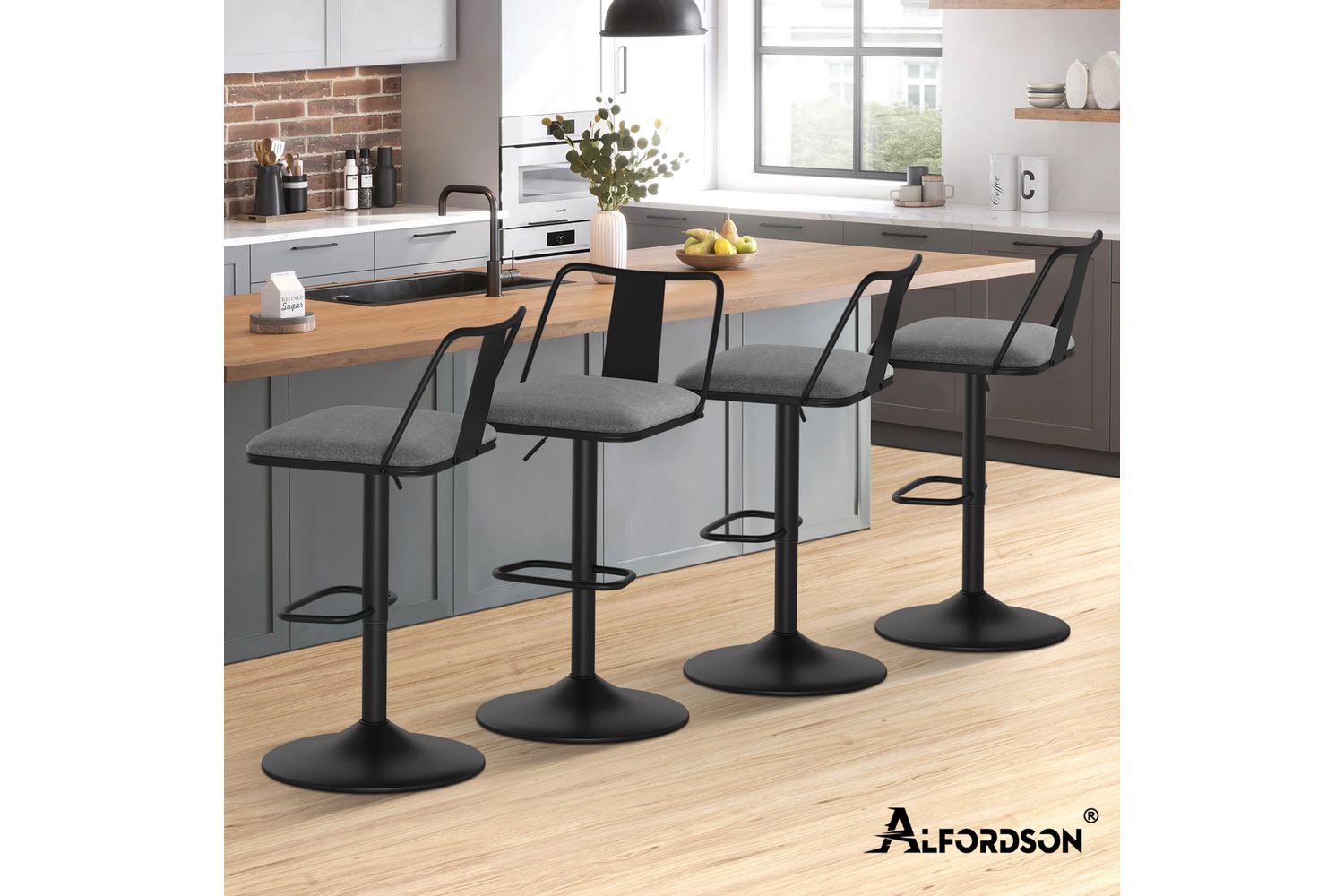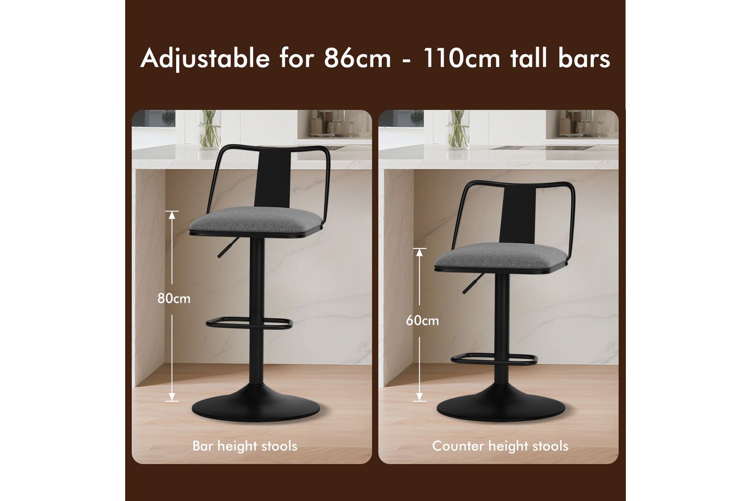 Transform your kitchen island, breakfast bar, or dining area with the Alfordson Bar Stools Set Of 2. Designed for modern Irish homes, these height adjustable swivel kitchen stools blend contemporary style with everyday comfort. The elegant grey fabric upholstery, paired with a sleek black chrome base, brings a touch of sophistication to any setting, making them the perfect addition to your home, whether you are entertaining guests or enjoying a quiet morning coffee.