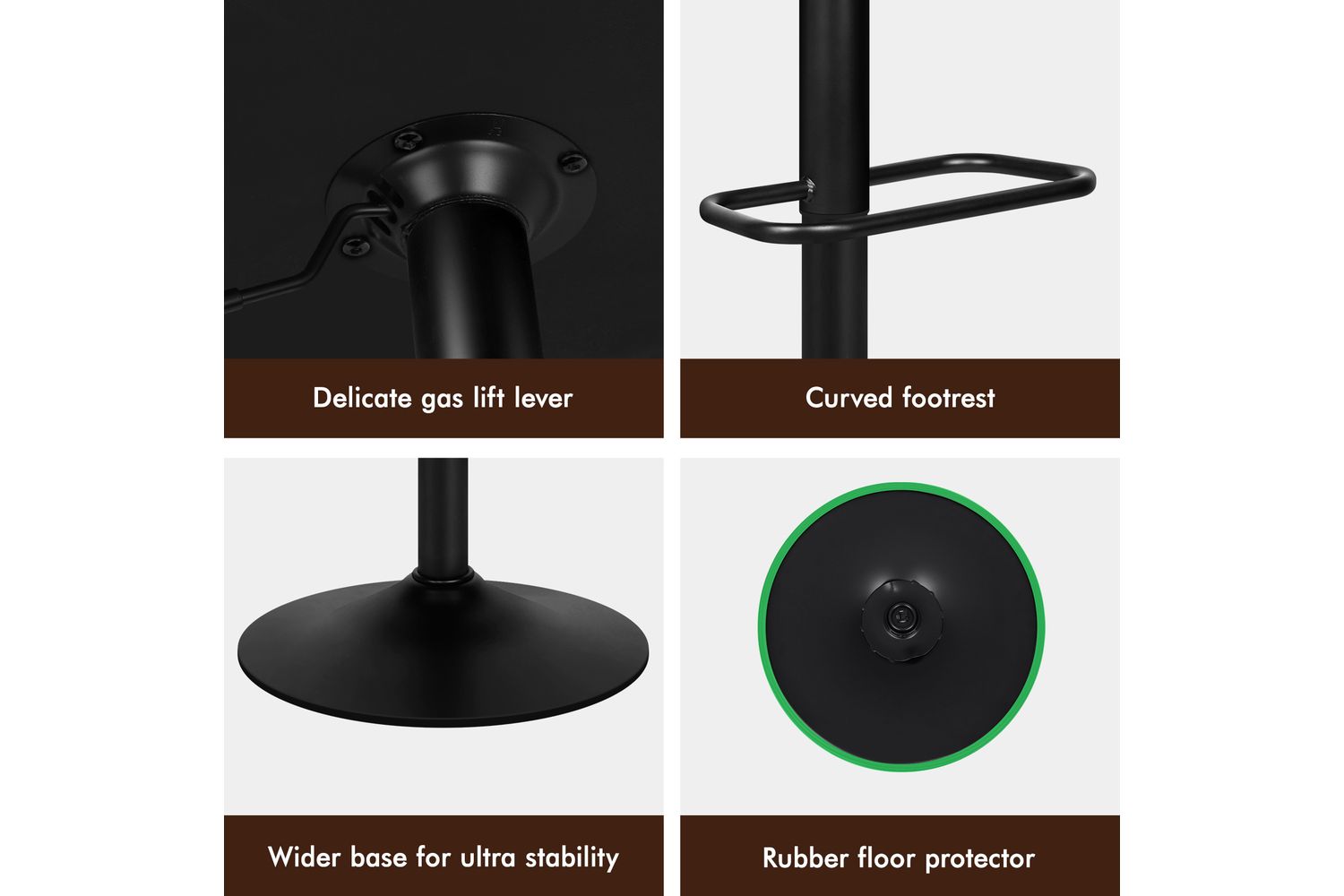Experience the ultimate in comfort with the ergonomically curved backrest and generously padded seat, crafted with high-resilience foam for lasting support. The 360-degree swivel function and easy height adjustment allow you to tailor your seating experience, ensuring everyone finds their perfect spot at the counter or bar. The sturdy steel construction and wider base provide exceptional stability, while the rubber floor protector keeps your floors safe from scratches and scuffs.