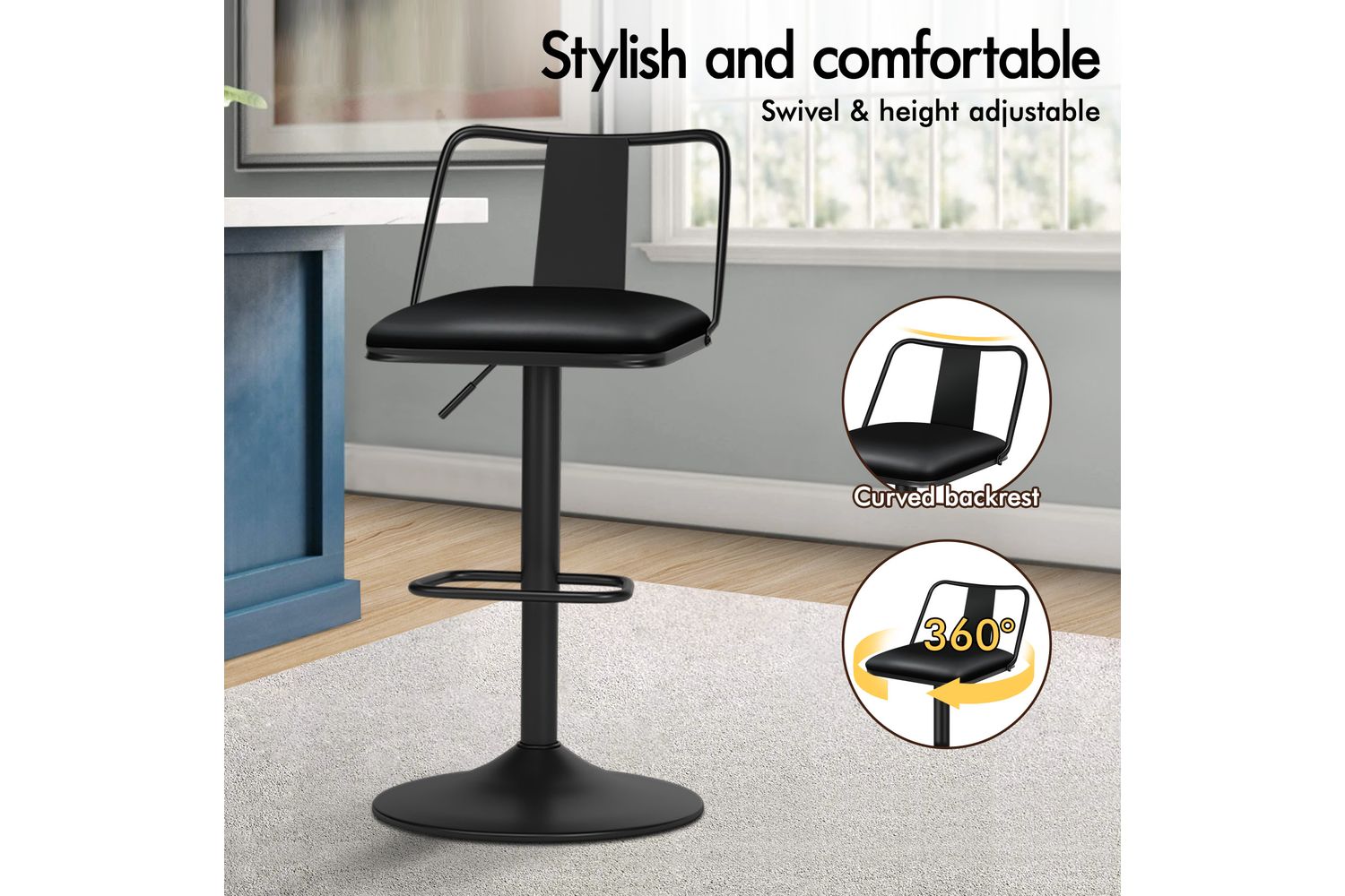 Alfordson Bar Stools Set Of 2 | Faux Leather | Height Adjustable | Black