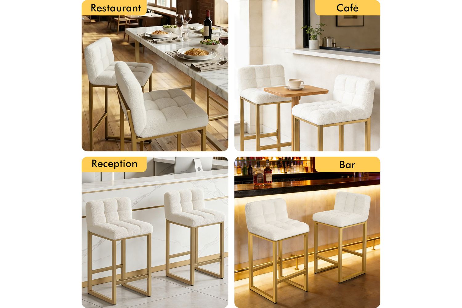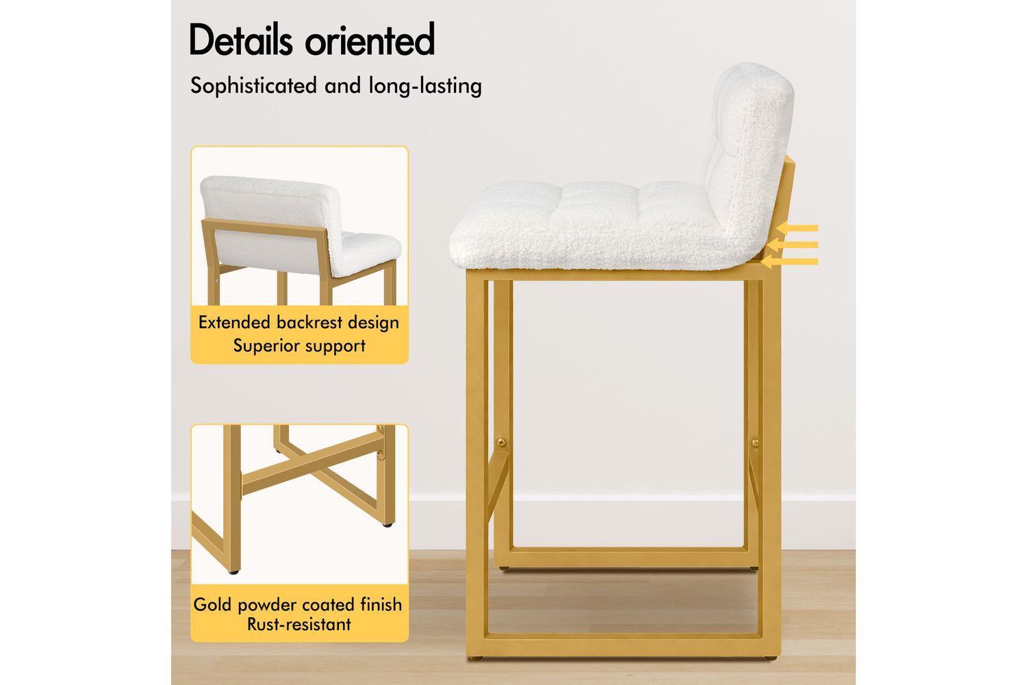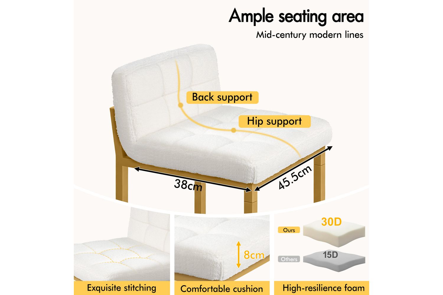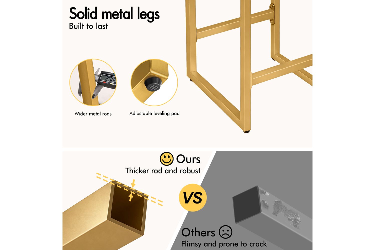 - Sturdy golden powder-coated steel legs for lasting stability