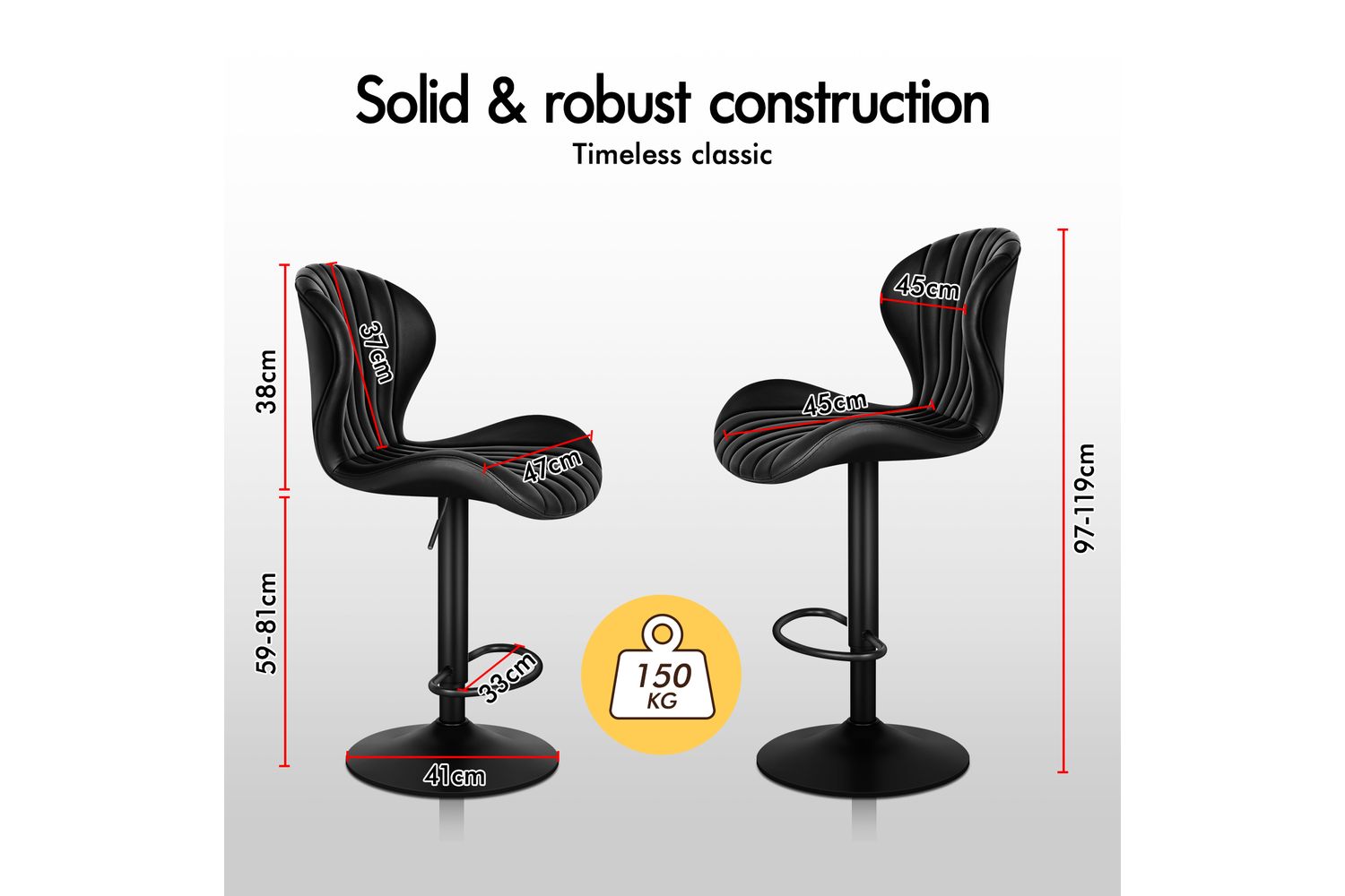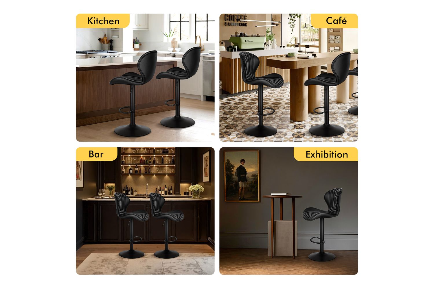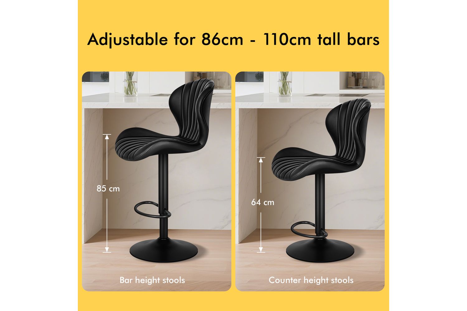 Transform your kitchen or dining space with the Alfordson Bar Stools Set of 2, designed to bring a sleek, contemporary look to any Irish home. These modern bar stools combine premium comfort with practical features, making them the perfect addition to your kitchen island, breakfast bar, or home bar area. With their elegant black faux leather upholstery and distinctive line stitching, these stools offer a sophisticated touch that complements both modern and industrial interiors.