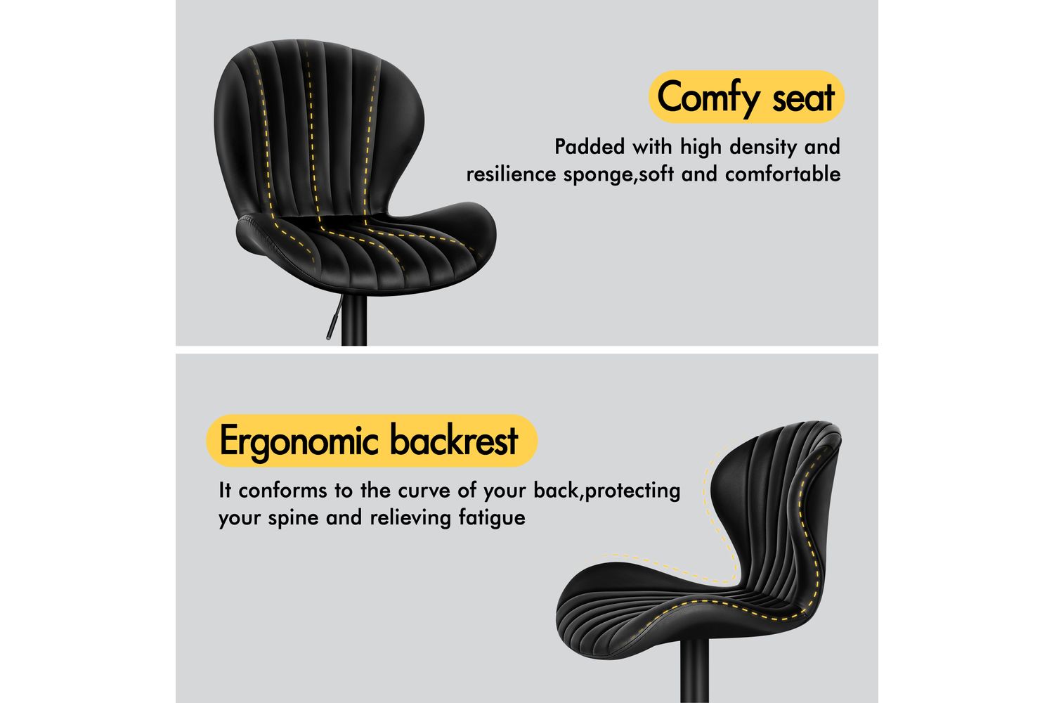 Enjoy superior comfort thanks to the ergonomically curved backrest and seat, which are expertly contoured to support your body. The generous high-resilience foam padding ensures you can sit back and relax, whether you are enjoying a quick breakfast or entertaining friends. The 360-degree swivel function and smooth gas lift lever allow you to adjust the height effortlessly, ensuring a perfect fit for any counter or bar height. The curved footrest provides extra support, making these stools ideal for long, comfortable gatherings.