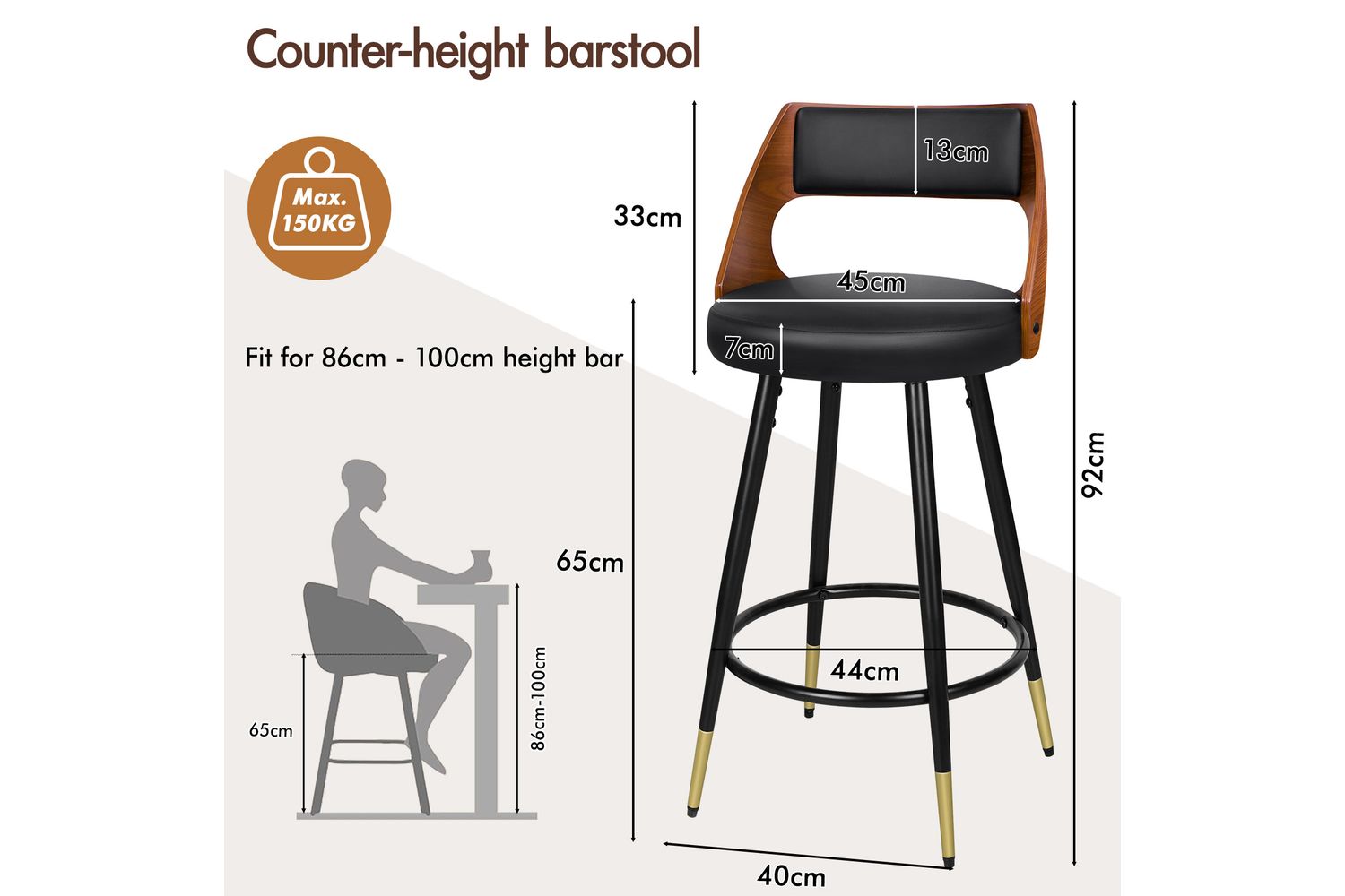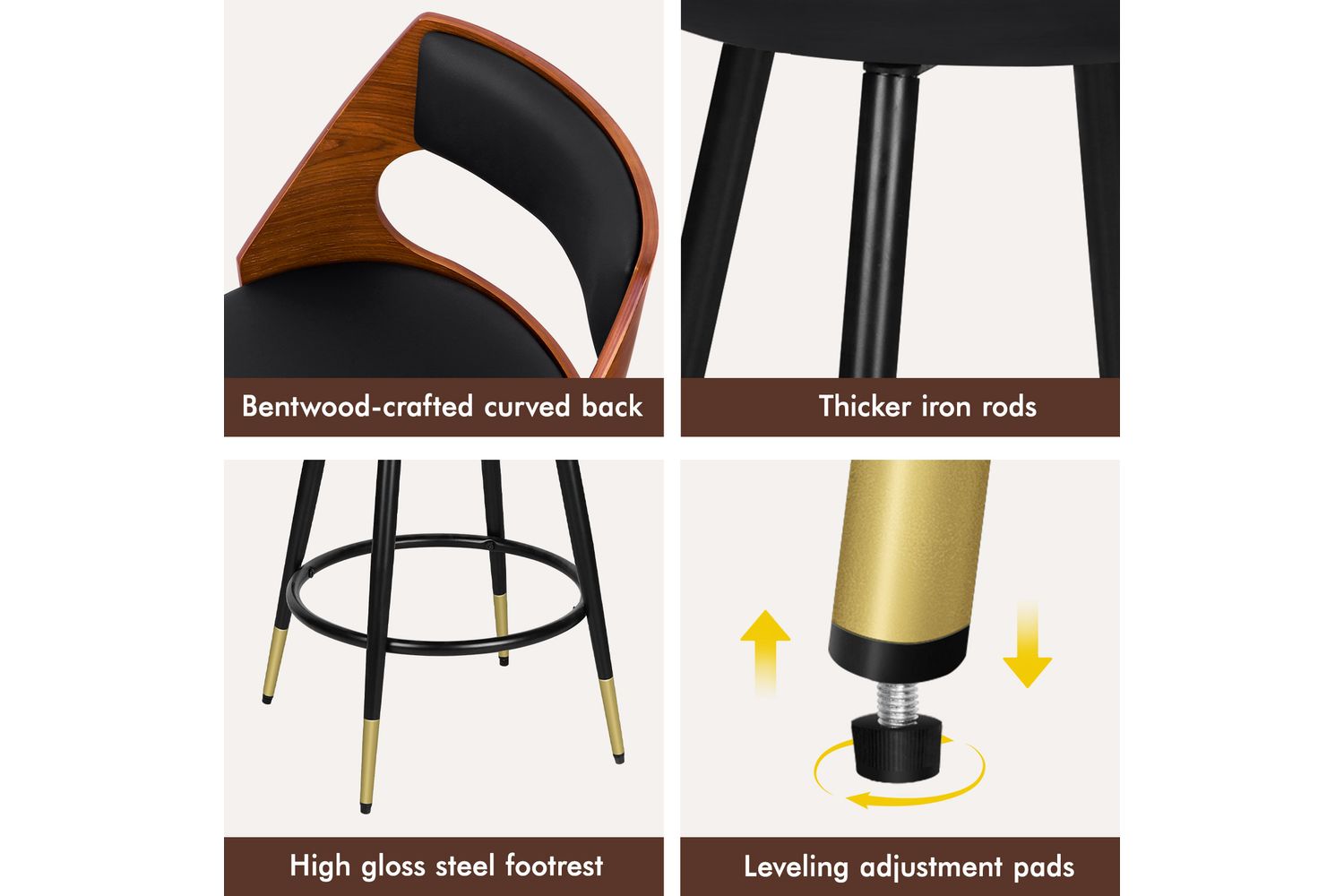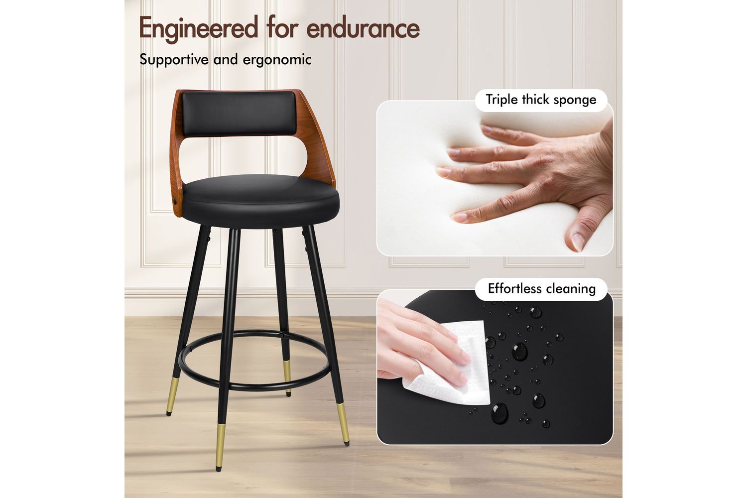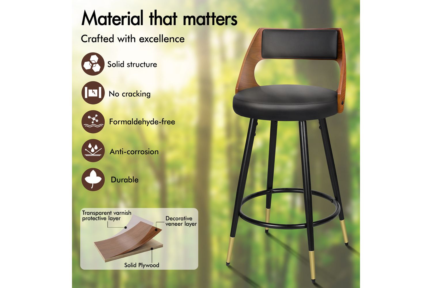 Crafted by ALFORDSON, a trusted name in quality furniture, these bar stools feature a harmonious mix of solid wood, premium PU leather, and elegant gold accents. The thickly padded seat and curved backrest are upholstered in easy-to-clean PU leather, providing a plush, supportive experience that makes every sit-down a pleasure. The high-density foam ensures lasting comfort, while the robust swivel mechanism—engineered with 45 ball bearings—lets you turn smoothly in any direction, making conversations and gatherings more enjoyable.