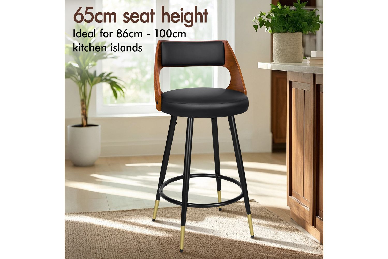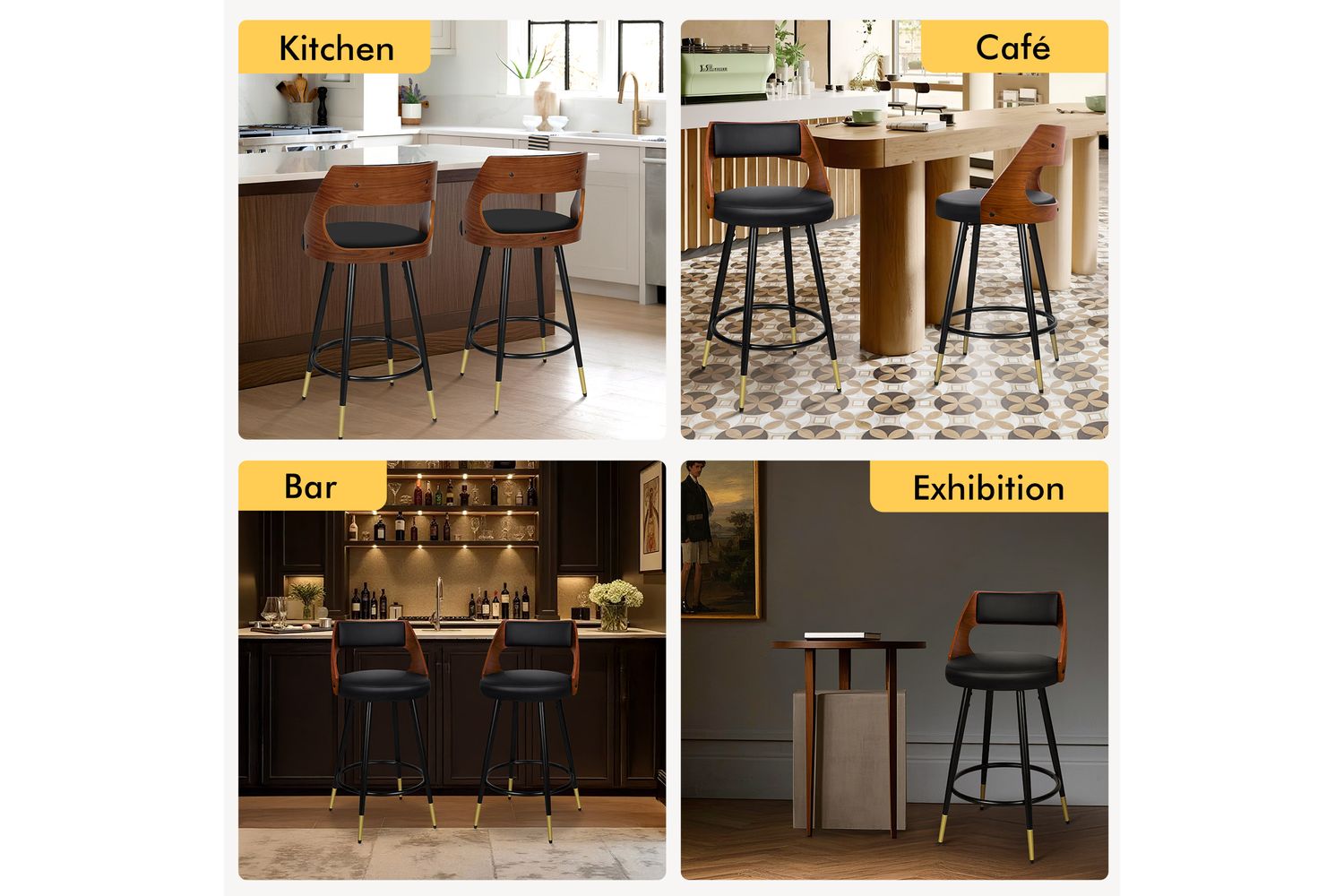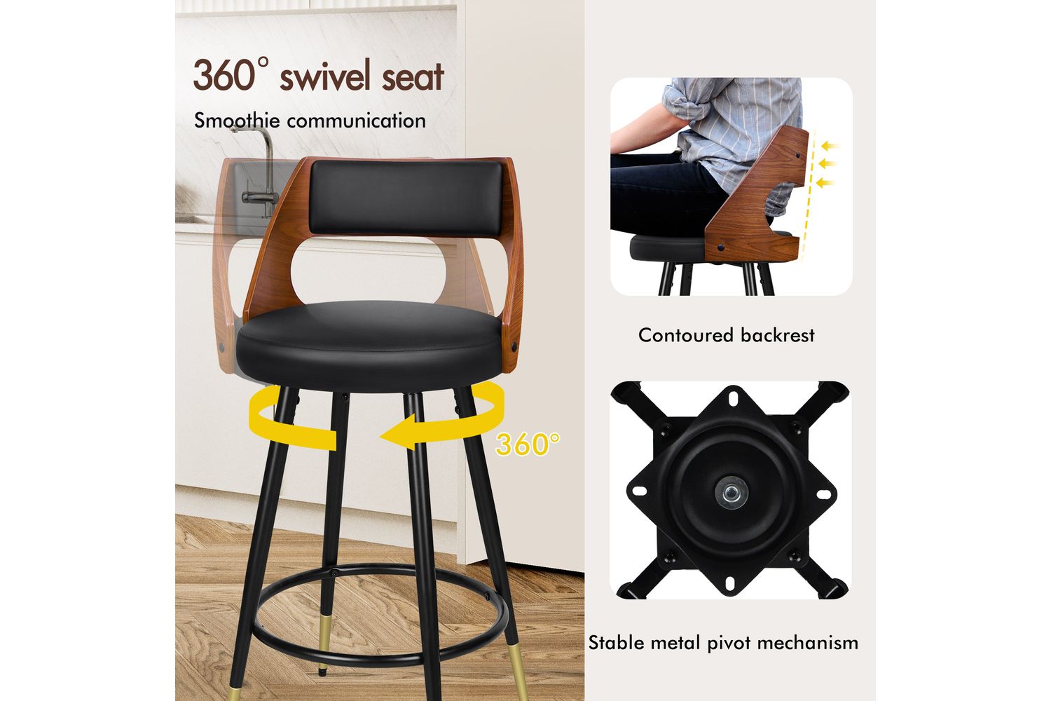 Alfordson Bar Stools Set Of 2 | Swivel Barstools | PU Leather And Wood | 65cm