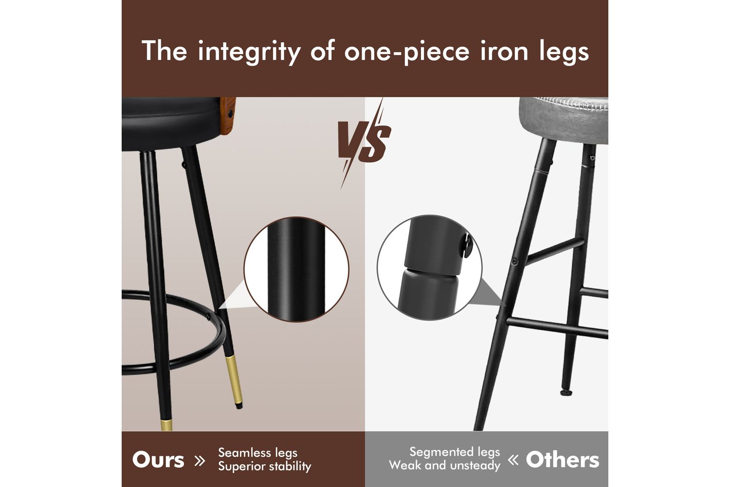Built for durability and stability, the reinforced metal legs and solid plywood seat frame can support up to 150kg, making these stools ideal for everyday use in busy Irish households. The round chrome steel footrest offers a comfortable spot to rest your feet, while anti-slip floor protectors keep your floors safe from scratches and scuffs. With their artistic design and practical features, these stools are as functional as they are stylish, fitting seamlessly into kitchens, breakfast bars, and dining areas across Ireland.