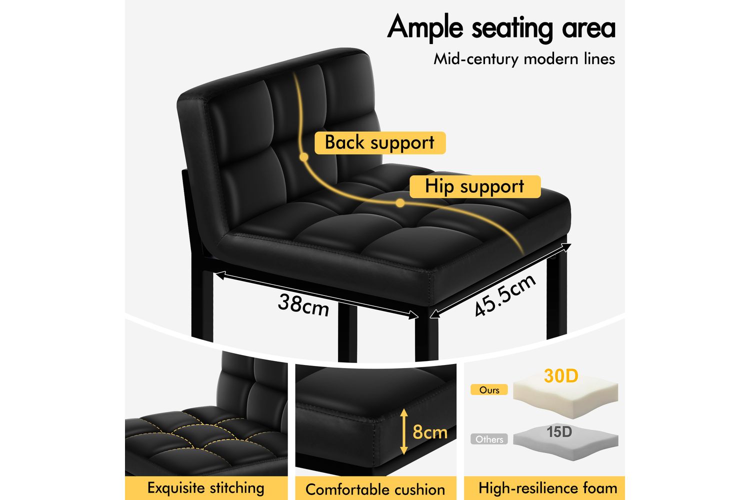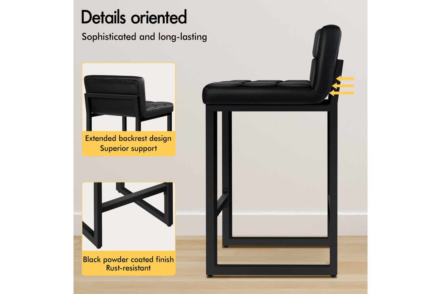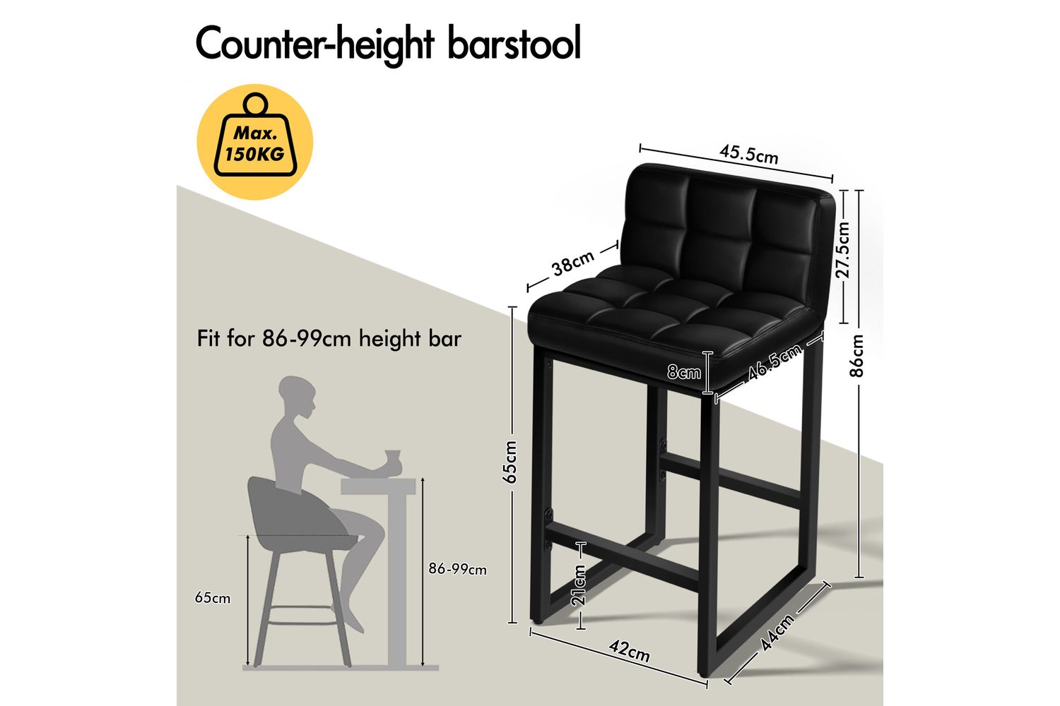 Built to last, these bar stools are supported by heavy-duty, thickened powder-coated steel legs, ensuring exceptional stability and durability. The anti-slip and anti-scratch floor protectors safeguard your floors, making these stools ideal for busy kitchens, bustling cafés, or lively restaurants. With a seat height of 65cm, they are perfectly suited for counters and tables with around 90cm knee clearance, giving you ample legroom and an optimal sitting posture.