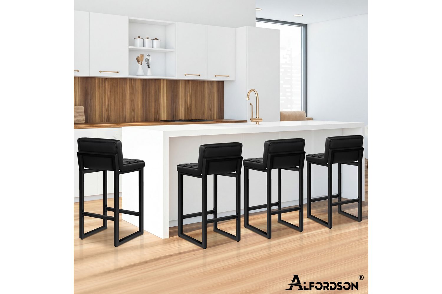 Crafted by ALFORDSON, a trusted name in quality furniture, each bar stool features a sleek black faux leather seat with a luxurious tufted pattern, adding a refined touch to any décor. The low back design provides just the right amount of support, while the built-in footrest ensures you can relax in comfort for hours. The generous high-resilience foam padding delivers a delightful sitting experience, offering both softness and support where you need it most.