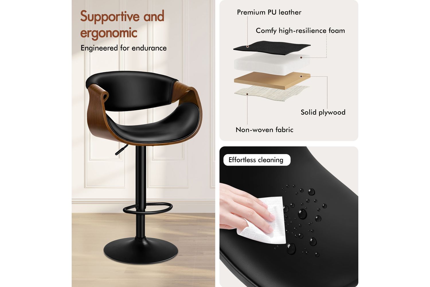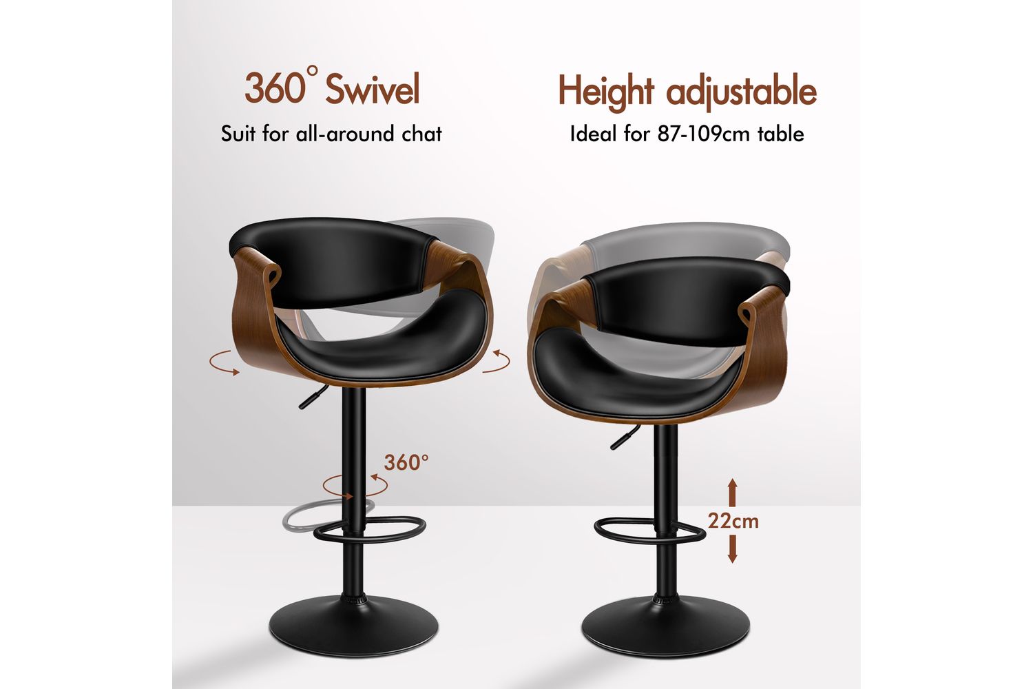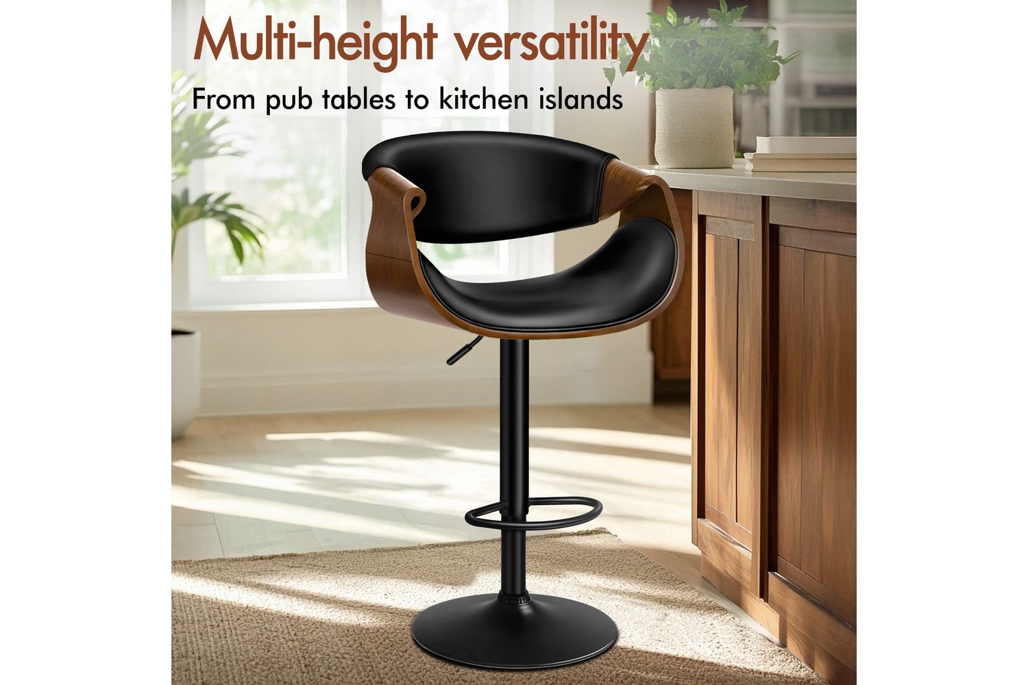 Alfordson Breakfast Bar Stool | 360 Swivel | Wooden & PU Leather | Height Adjustable | Black | 1 Piece