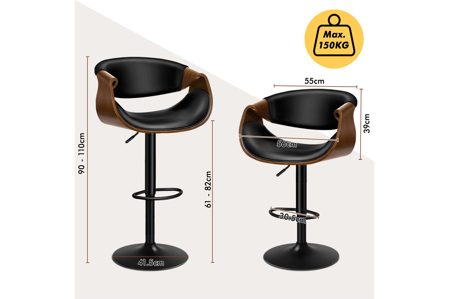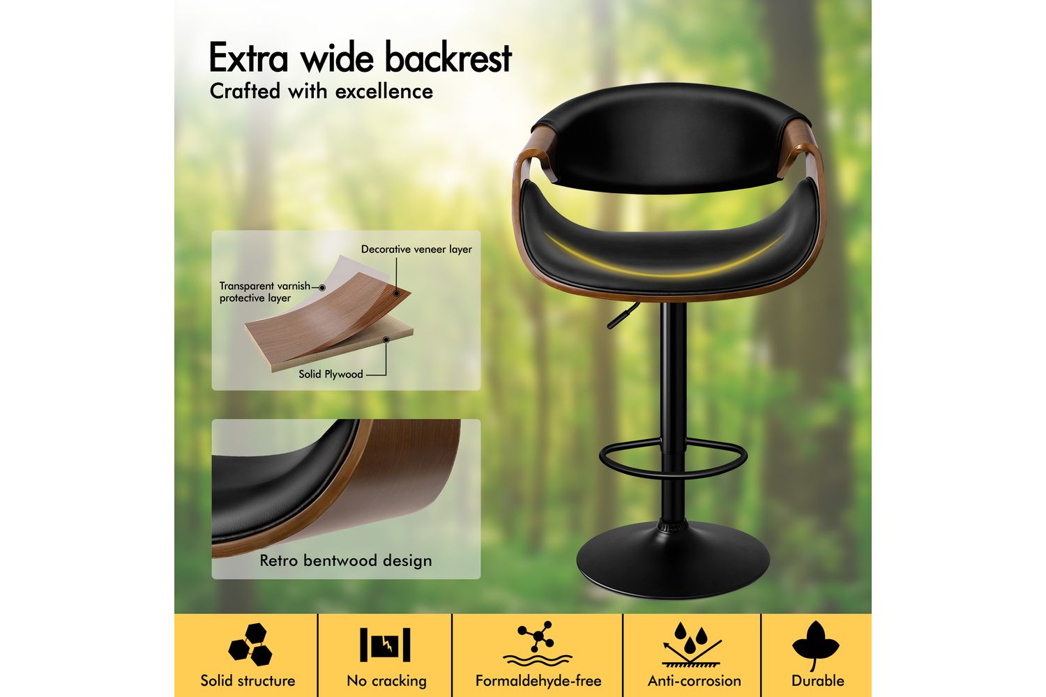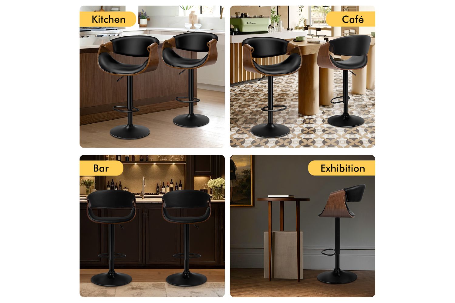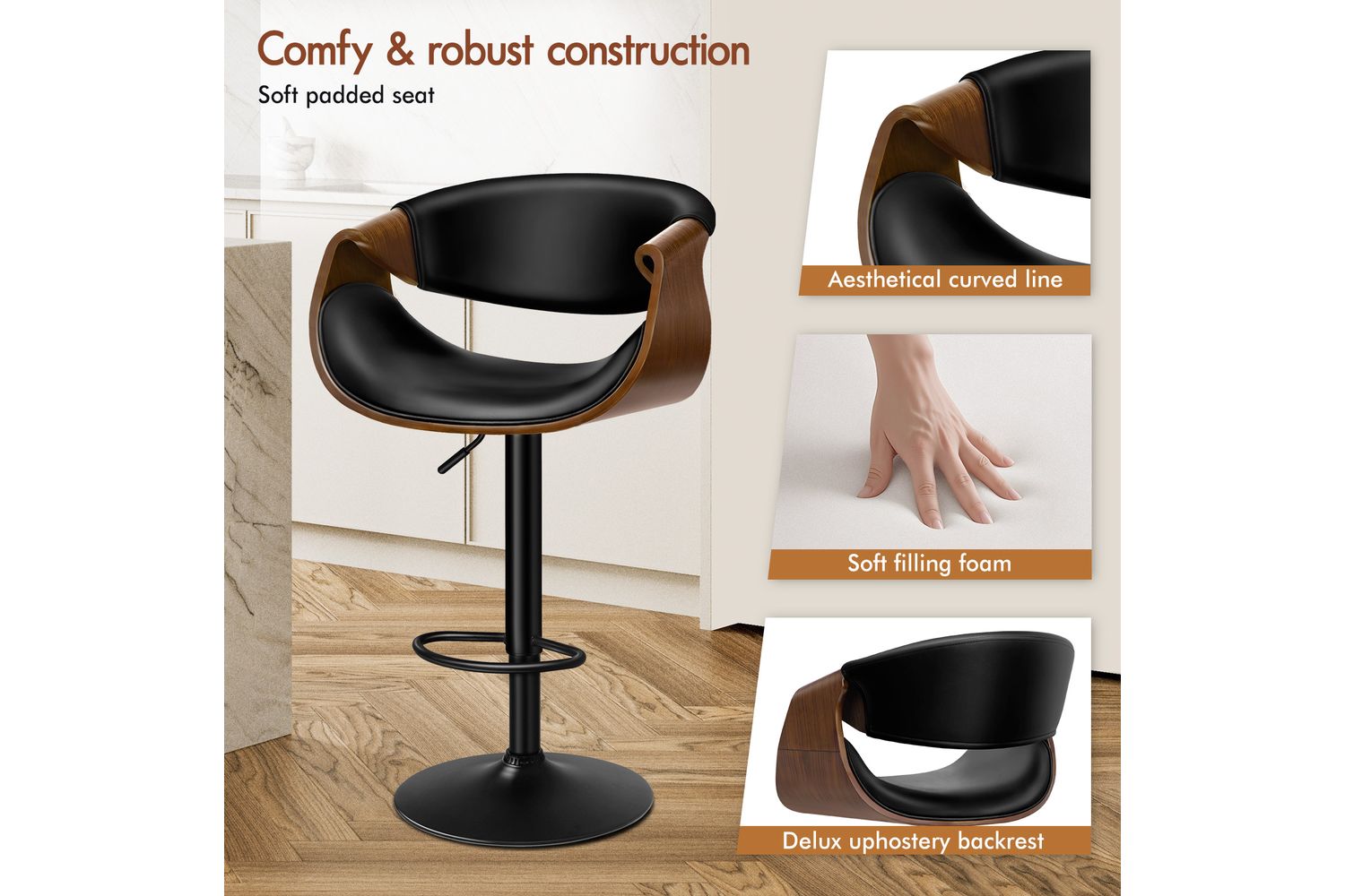 Alfordson Breakfast Bar Stool | 360 Swivel | Wooden & PU Leather | Height Adjustable | Black | 1 Piece